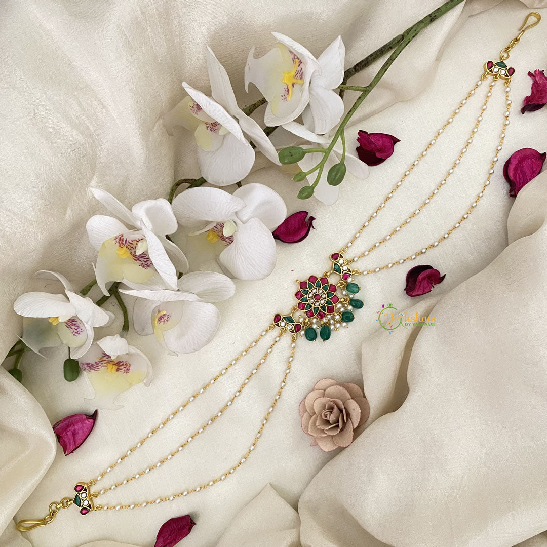 Vriksham Antique Floral Kundan Jadau Sheeshphool-Red Green & White-J2778