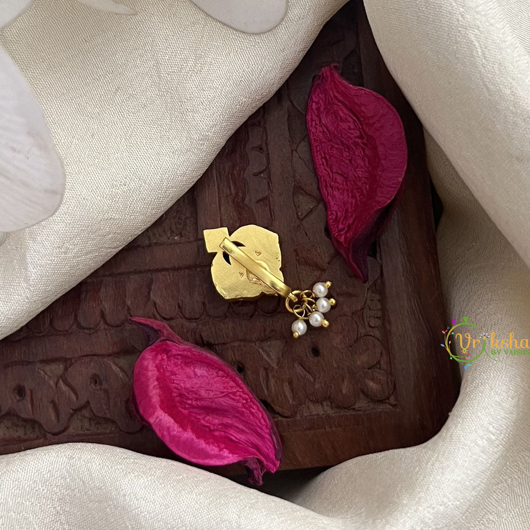 Add a touch of luxury to your look with the Vriksham Antique Flower Kundan Nath. This exquisite piece features a stunning combination of red, white, and green hues, adorned with delicate pearls. Perfect for any occasion, it will bring a sense of elegance and sophistication to your wardrobe.