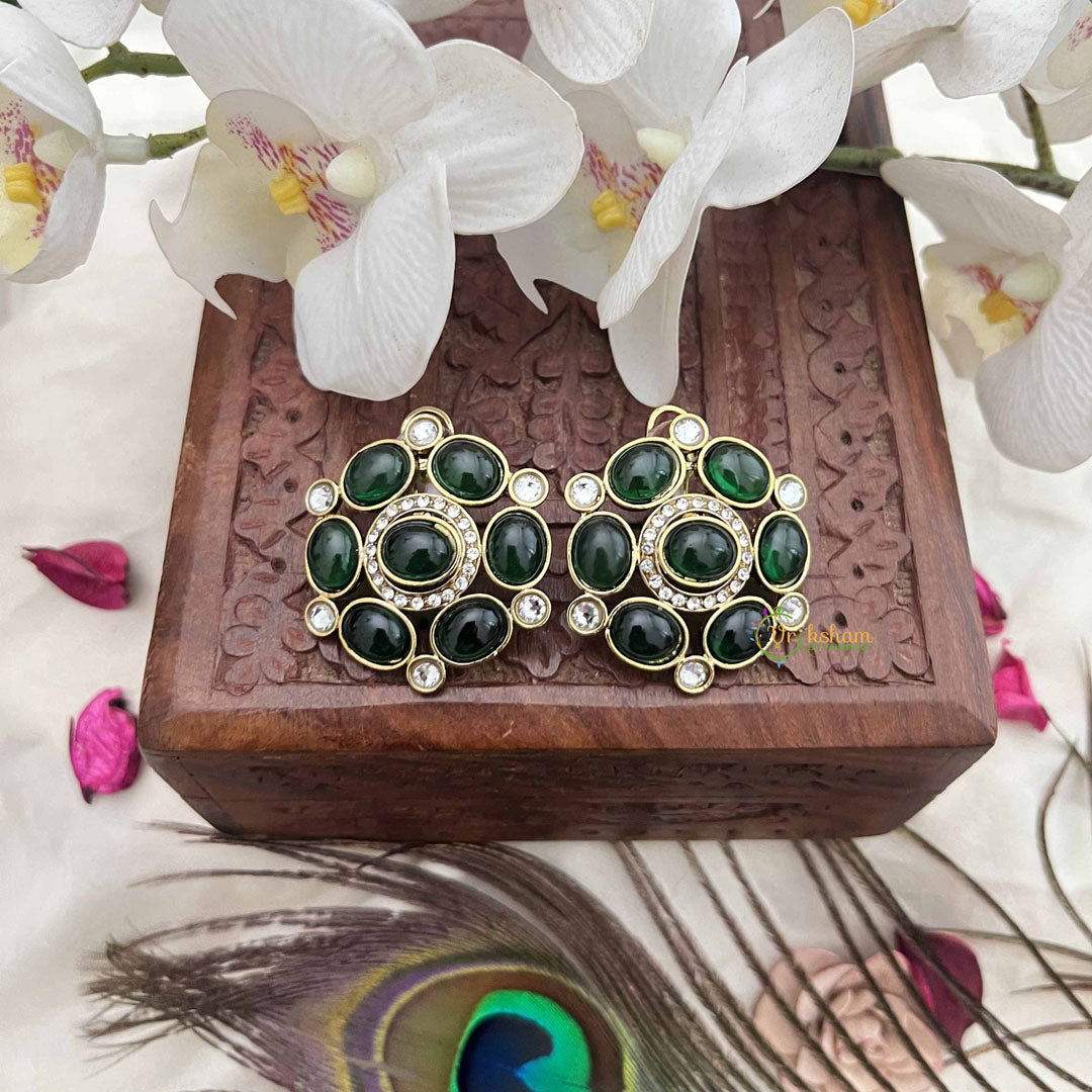 Vriksham Antique Green Kundan Floral Stud Earrings-G20143