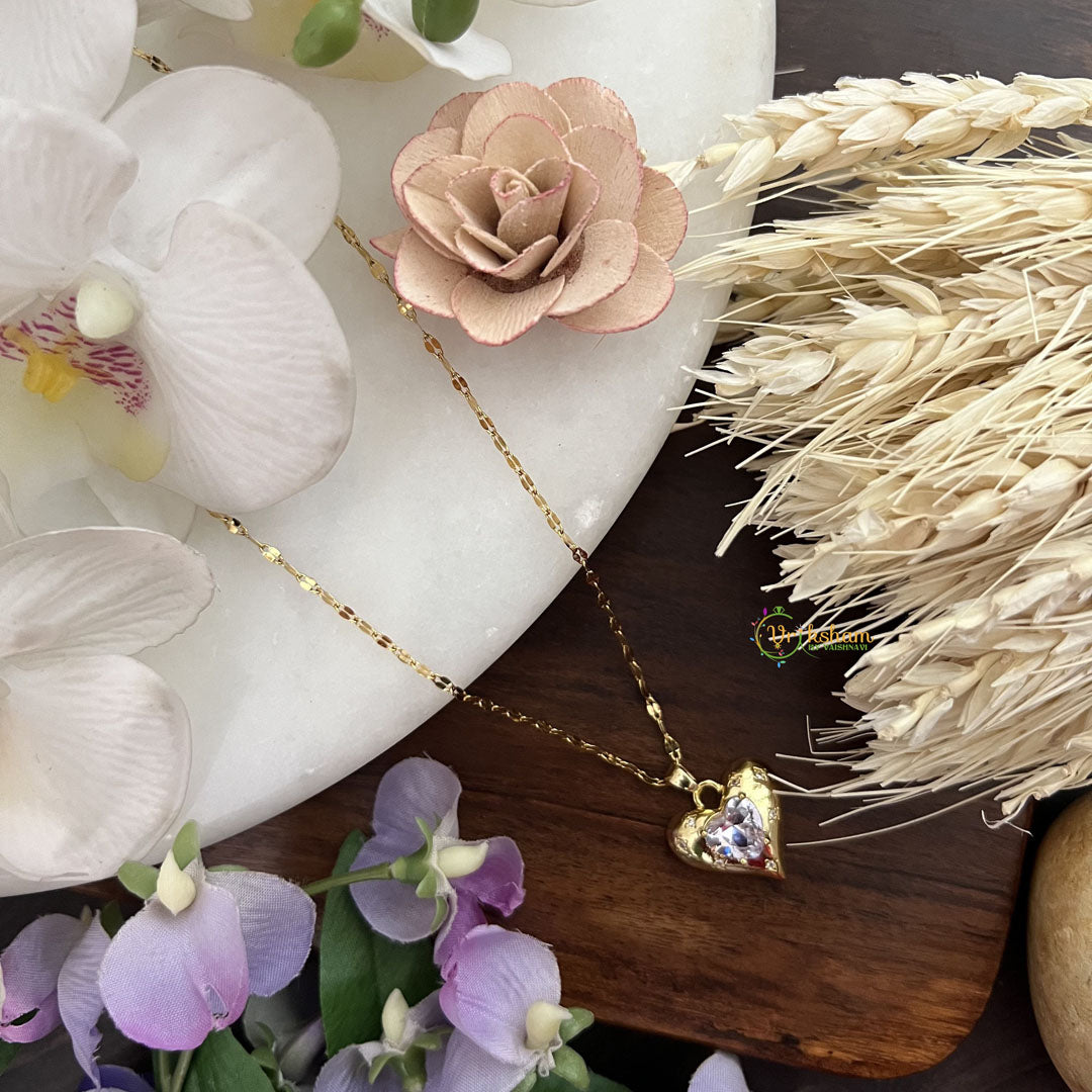 Experience timeless elegance with our Vriksham Antique Hearth Shape AD Stone Pendant. Crafted from anti-tarnish stainless steel, this exquisite necklace chain features intricate detailing and a lustrous AD stone. A perfect blend of antique charm and modern durability, it's a must-have addition to your jewelry collection.
