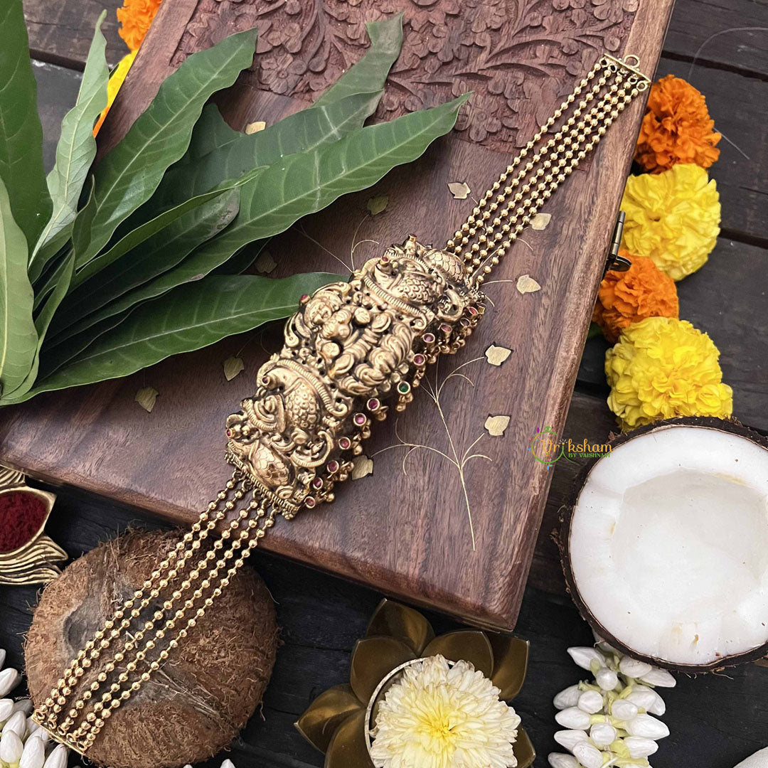 The Vriksham Antique Lakshmi 1 gm Gold Choker blends timeless tradition with sophisticated design. Featuring a delicate gold finish and antique Lakshmi motifs, this choker offers an elegant statement piece that enhances your ensemble with cultural richness and refined style. Its lightweight build ensures comfortable wear for any occasion.