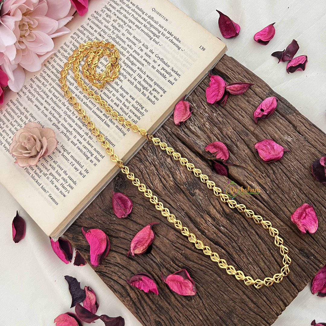 Elevate your everyday style with the Vriksham Antique Leaf Design Gold Chain. Crafted with fine attention to detail, this 30-inch chain features an elegant leaf motif that adds a touch of timeless sophistication. Perfect for daily wear, its subtle antique finish complements any outfit, making it a graceful addition to your jewelry collection. Durable and stylish, this chain seamlessly blends classic charm with modern elegance.