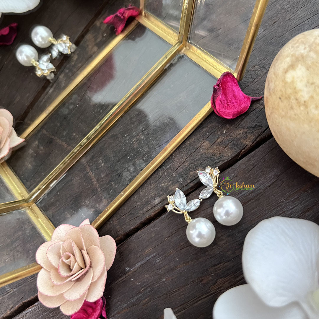 Indulge in luxury with our Vriksham Antique Leaf Shape Earrings. Crafted with anti-tarnish stainless steel, these earrings feature a stunning leaf-shaped stone and big pearl, making a sophisticated statement. Elevate your style with this tasteful and exclusive piece.