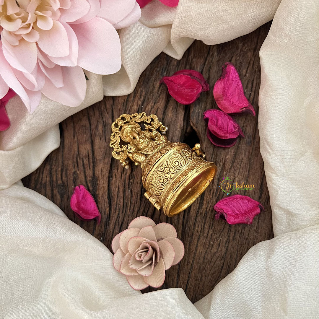 The Vriksham Antique Lord Ganesha Kumkum Box combines timeless artistry with practical use. Featuring a finely crafted depiction of Lord Ganesha, this elegant box offers a dignified way to store kumkum, enhancing your devotional rituals. Its antique finish adds a classic charm, making it a distinguished addition to any prayer altar or sacred space.