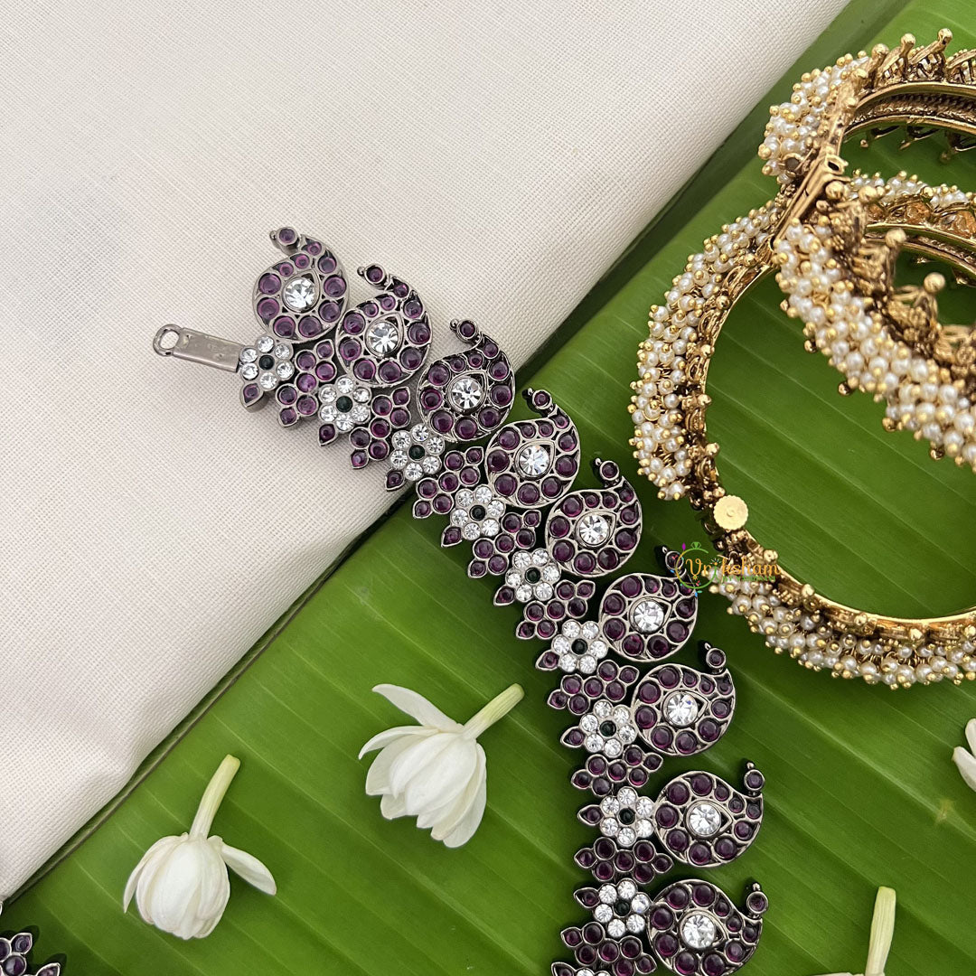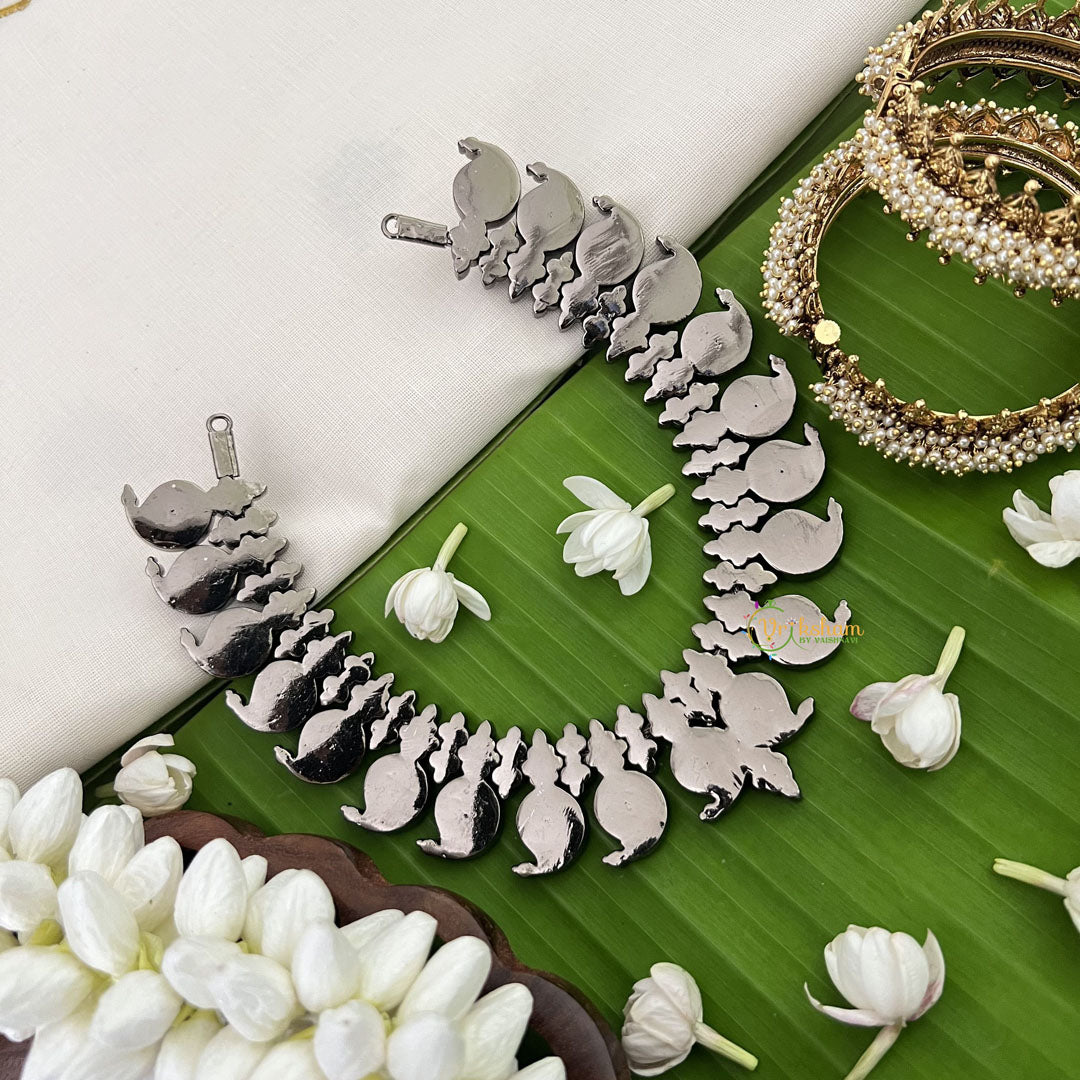 Elevate your elegance with the Vriksham Antique Maanga Style Black Polish Kemp Short Neckpiece. This exquisite piece features a timeless antique finish paired with striking black polish and vibrant kemp stones, creating a refined statement for any occasion. Its short length enhances neckline grace, making it perfect for both traditional and contemporary attire. Crafted to blend heritage charm with modern sophistication, this neckpiece adds a distinguished touch to your jewelry collection.