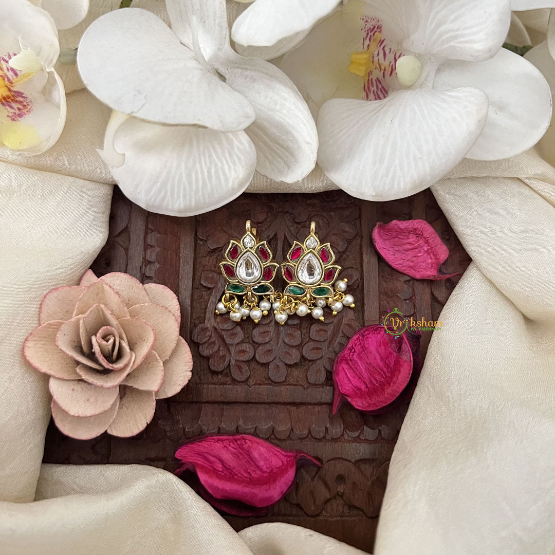 The Vriksham Antique Petal Oval Kundan Jadau Press Bugadi combines timeless elegance with intricate craftsmanship. Featuring a harmonious blend of red, green, and white tones enhanced by delicate pearl accents, this oval-shaped piece showcases traditional Kundan Jadau artistry. Its antique petal design adds a refined, sophisticated touch, making it a distinguished accessory for those who appreciate classic beauty with cultural depth.