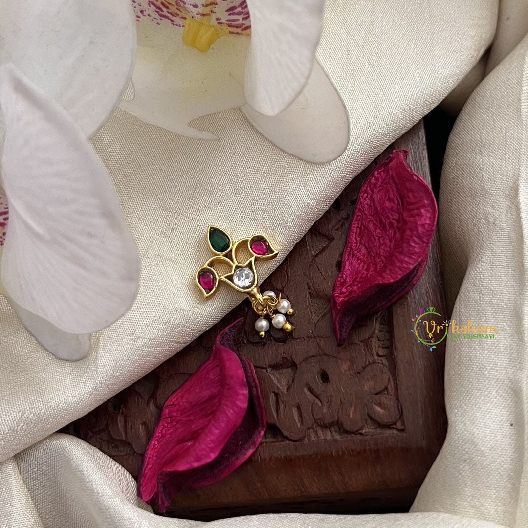 Indulge in luxury with our Vriksham Antique Red Green Jadau Kundan Nath-Pearls. This stunning piece boasts intricate craftsmanship and elegant pearls, elevating any look to a higher level. Allow yourself to be adorned in the finest of jewelry and feel like a true fashion icon.