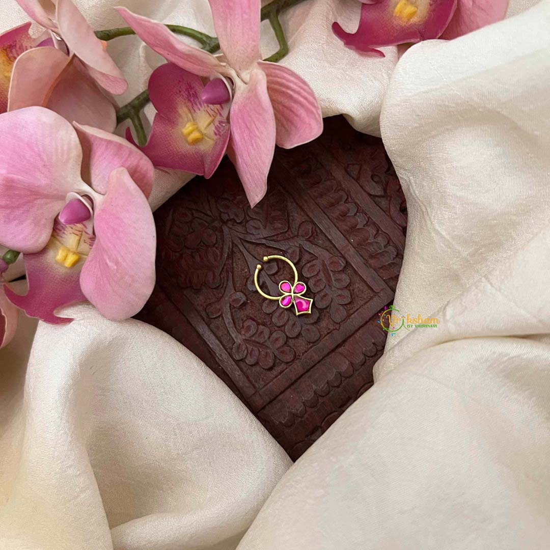 Golden Naths/Nose ring for Non - Pierced Nose. People who do not have piercing do not have to worry about not being able to wear naths. These nose rings helps people with non pierced nose also wear the same with a screw like holding. The moment you see the nath you will be able to understand how it will sit on the nose.