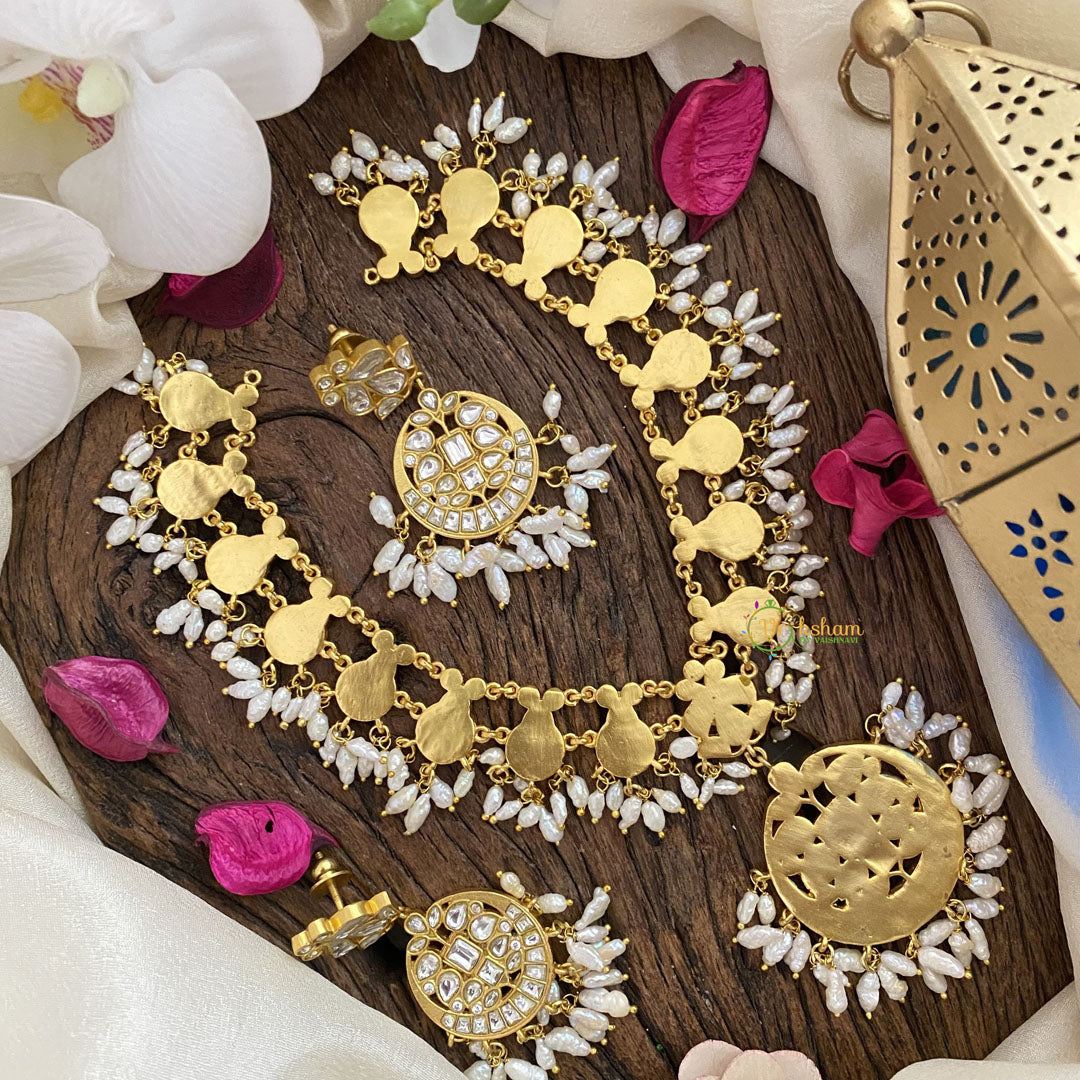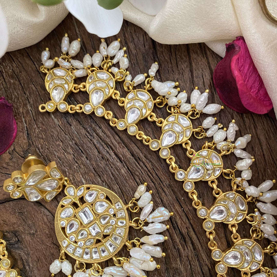 Indulge in luxury with our Vriksham Antique White Kundan Jadau Short Neckpiece. Adorned with exquisite rice pearls, this necklace exudes elegance and sophistication. Handcrafted with the finest Kundan, it will elevate any outfit and make you stand out in any event. Elevate your style and make a statement with this exclusive piece.