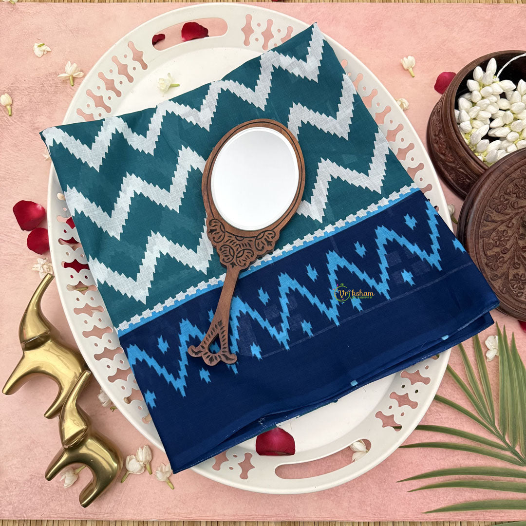 The Vriksham Aqua Green Cotton Mulmul Saree features a sophisticated zig zag print that adds dynamic elegance to its soft, breathable fabric. Crafted from lightweight mulmul cotton, this saree offers comfort and a graceful drape, making it an ideal choice for both casual gatherings and refined occasions. Its refreshing aqua green shade enhances a poised and stylish appearance.