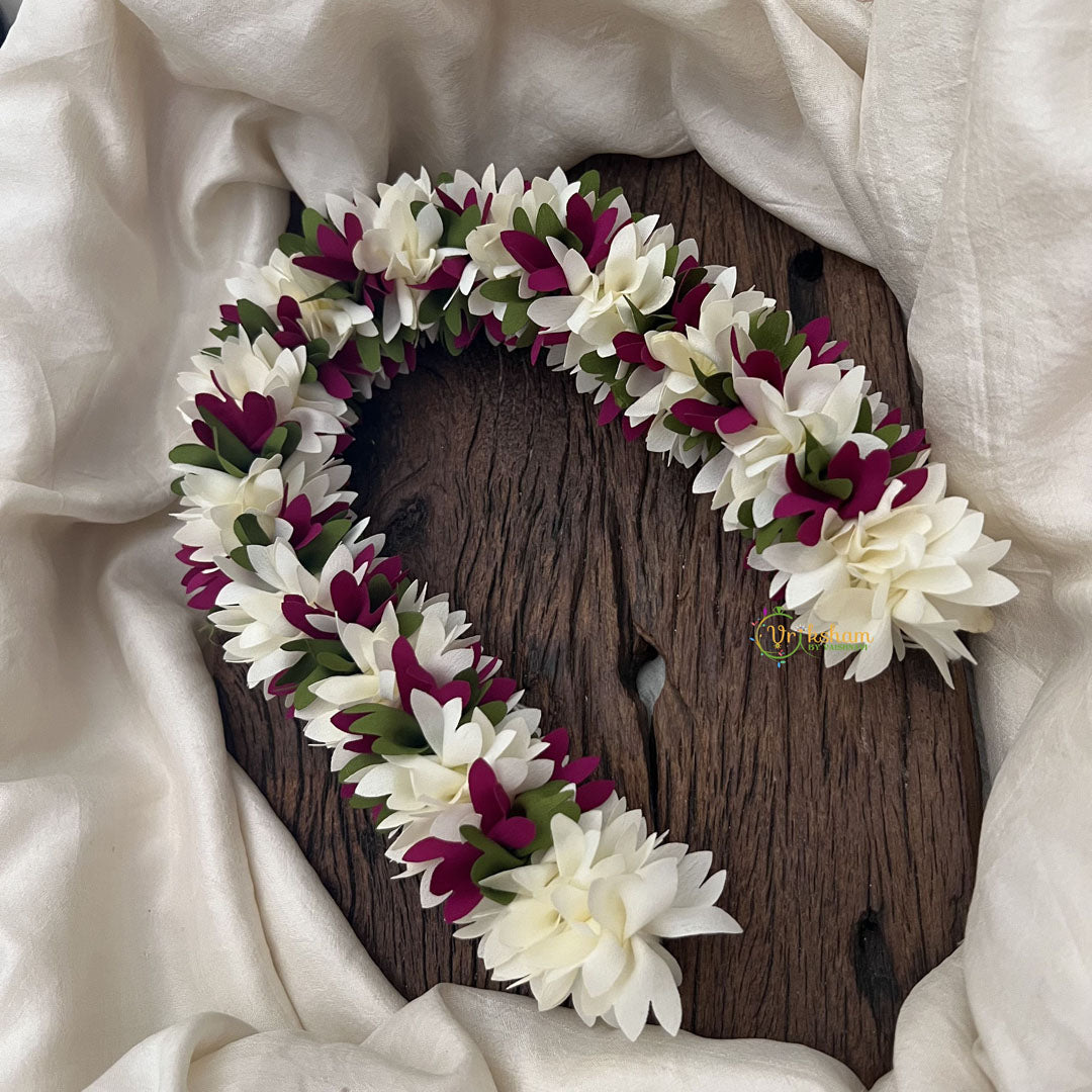 Enhance your hairstyle with the Vriksham Artificial Two Flowers Combination Gajra in vibrant pink and white. Designed for hair buns, this elegant accessory blends bright orange and pure white flowers to create a refined and eye-catching look. Perfect for festive occasions or everyday elegance, it offers a lasting floral charm without the need for upkeep.