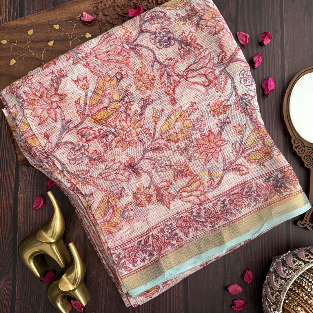 Experience elegance and luxury with our Vriksham Baby Pink Floral Print Kotta Cotton Saree. Made from the finest quality of Kotta Cotton, this saree features a beautiful floral print design that exudes sophistication and style. Elevate your wardrobe with this exclusive piece and make a statement wherever you go.
