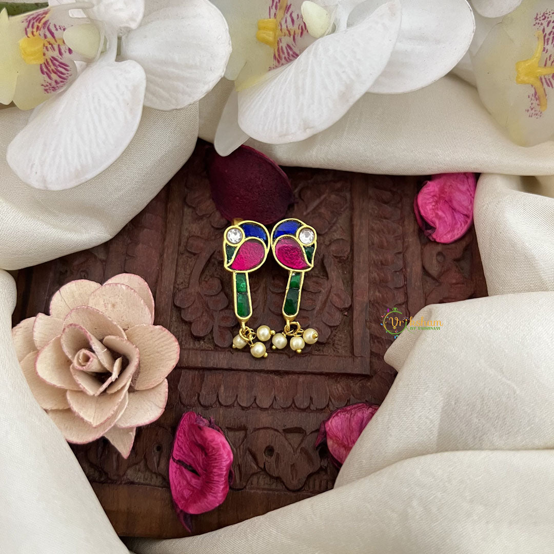 Elevate your style with our Vriksham Bird Shape Maharashtrian Style Press Bugadi. Crafted with intricate detailing and vibrant hues of red, green, and blue, it adds a touch of traditional elegance to any outfit. Embrace luxury and sophistication with this exclusive accessory.