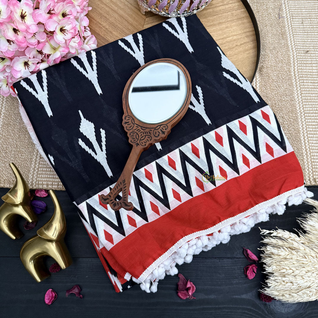 Introducing the Vriksham Black Cotton Mulmul Saree - the epitome of luxury and sophistication. Made from the finest cotton mulmul fabric, this saree is lightweight and comfortable, perfect for everyday wear. The elegant black color and intricate design makes it a must-have for any fashionista. Elevate your wardrobe with this exclusive piece.