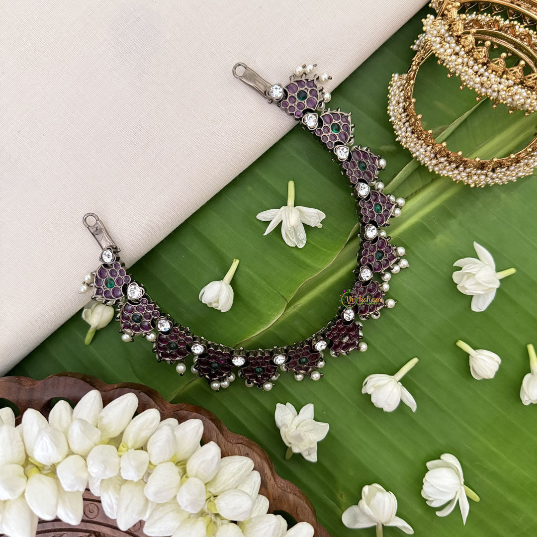 The Vriksham Black Polish Precious Kemp Short Neckpiece with pearls combines classic elegance with a modern edge. Featuring a striking black polish finish and delicate pearl accents, this neckpiece offers a refined statement piece that enhances any sophisticated ensemble with subtle charm and timeless beauty.
