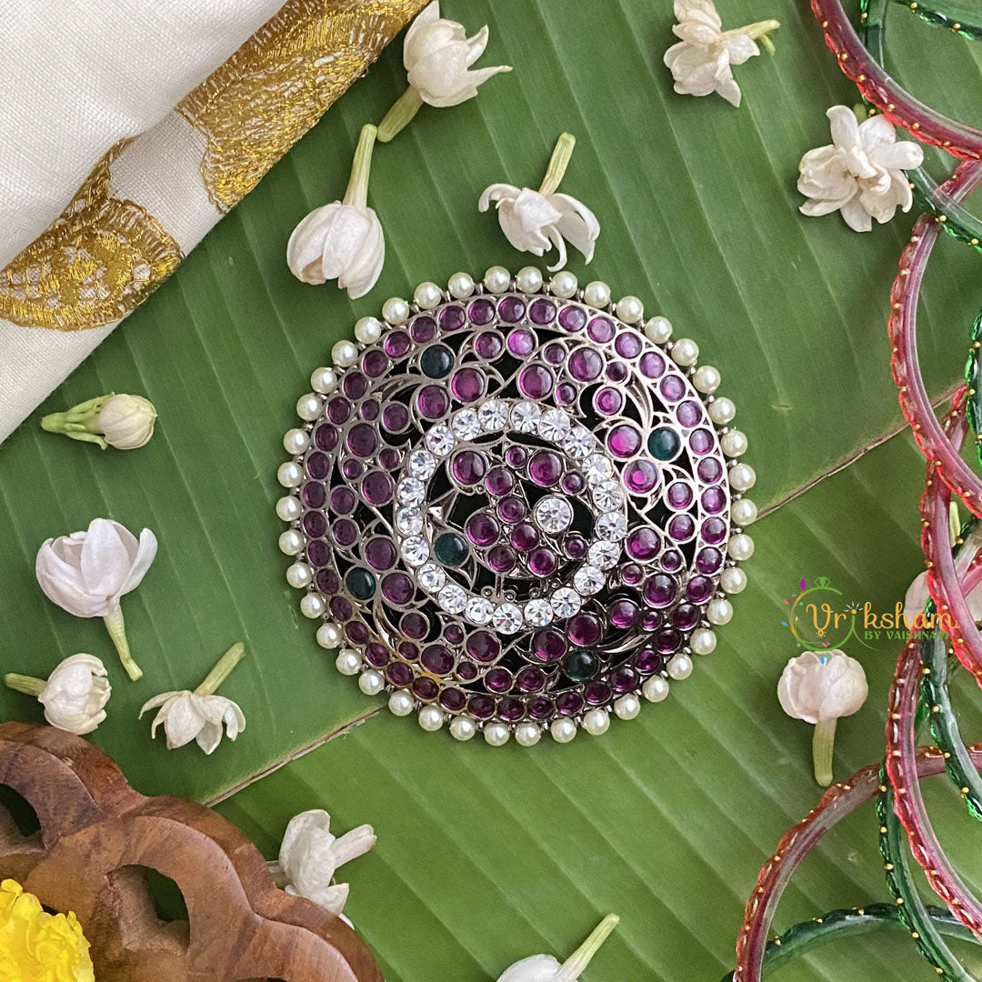 Complete your traditional look with the Vriksham Black Polish Kemp Jada Billai. The intricate design of precious kemp beads adds a touch of elegance and sophistication to your hair. This traditional hair accessory is the perfect finishing touch for any special occasion.