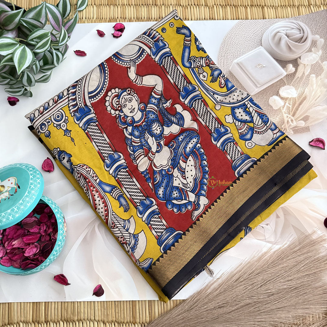 Vriksham Black & Yellow Kalamkari Saree With Nizam Border-VS4678