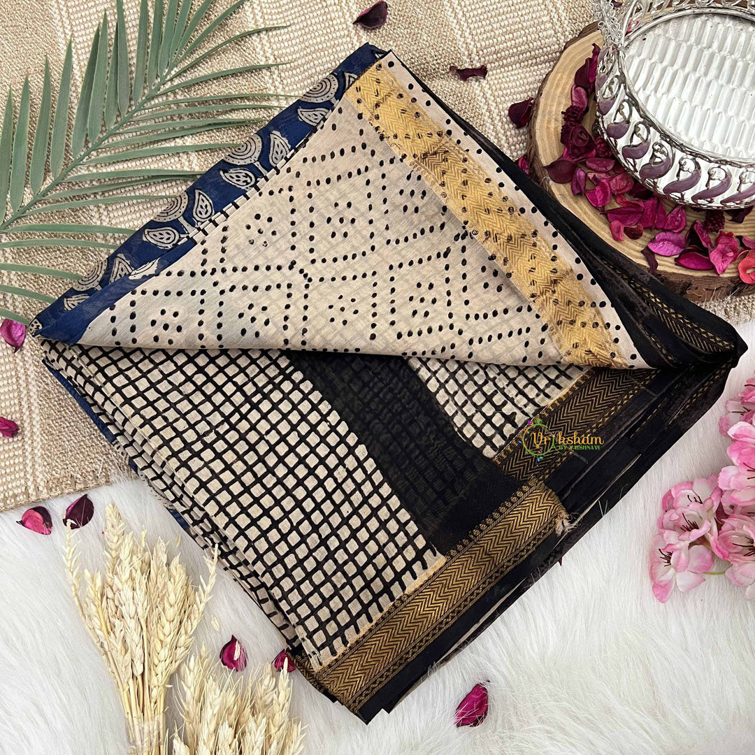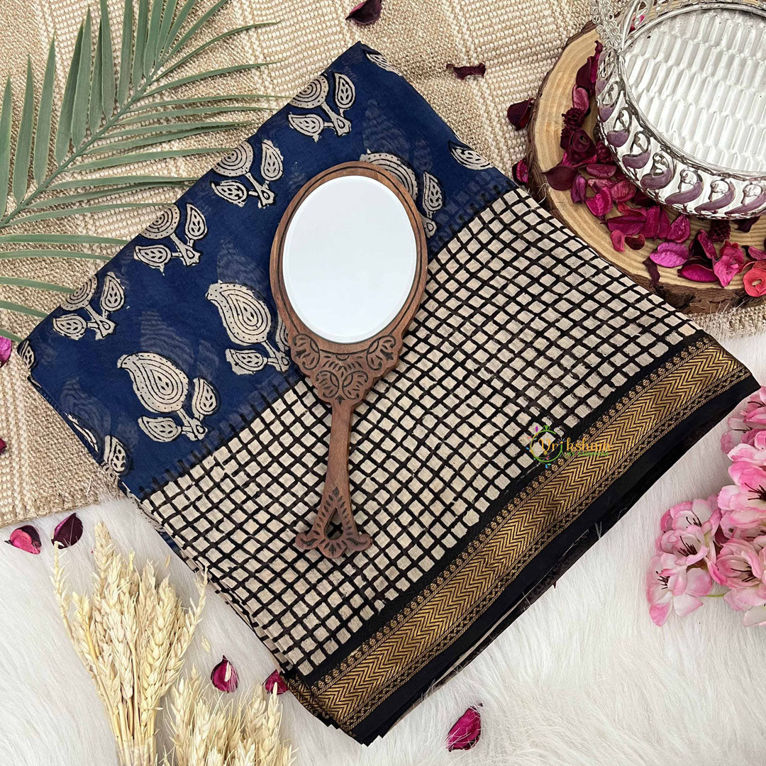Elevate your ethnic wardrobe with this exquisite Blue & Cream Manga Maheshwari silk cotton saree, a masterpiece of traditional handloom craftsmanship. Woven with precision using premium silk-cotton blend, this saree showcases the distinctive Manga pattern characteristic of Maheshwari weaving. The sophisticated interplay of deep blue and cream hues creates a timeless aesthetic that transitions seamlessly from festive occasions to refined everyday wear. The lightweight fabric ensures comfort throughout the day, while the intricate detailing reflects generations of artisanal expertise. Perfect for those who appreciate authentic handloom textiles and understated elegance.