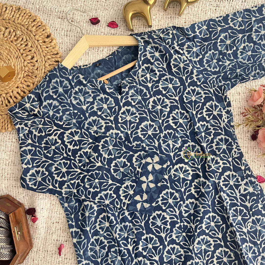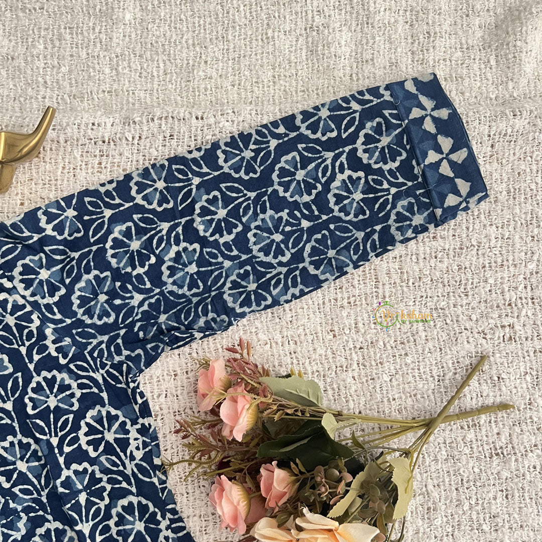 Introducing Vriksham Blue Handblock Cotton Short Kurti, the perfect blend of style and comfort. Made with 100% cotton and handblock printing, this elegant 3/4 sleeve kurti is suitable for both daily wear and office wear. Elevate your wardrobe with this luxurious piece and make a statement wherever you go.