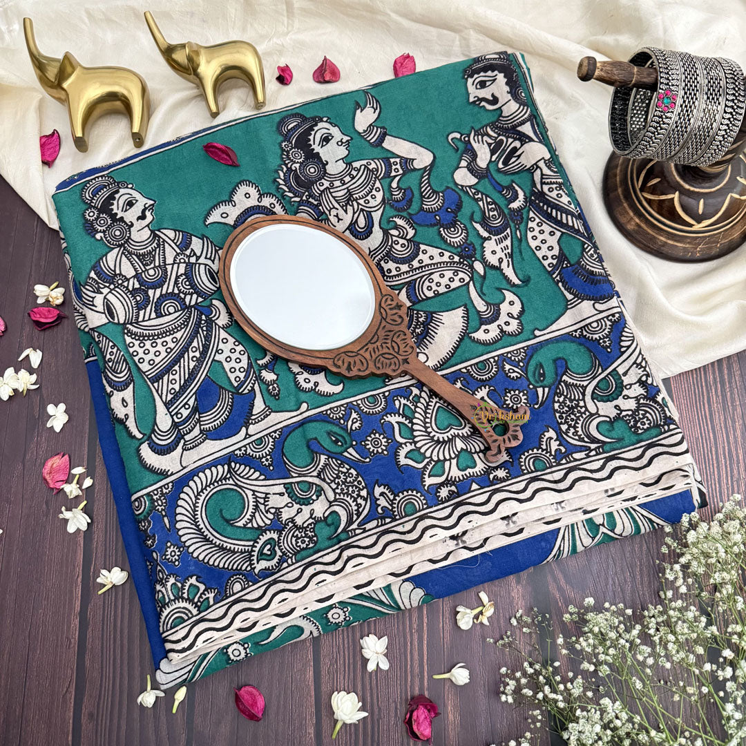 Vriksham Blue & Green Kalamkari Cotton Saree With Gatti Border-VS4535