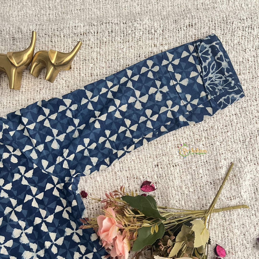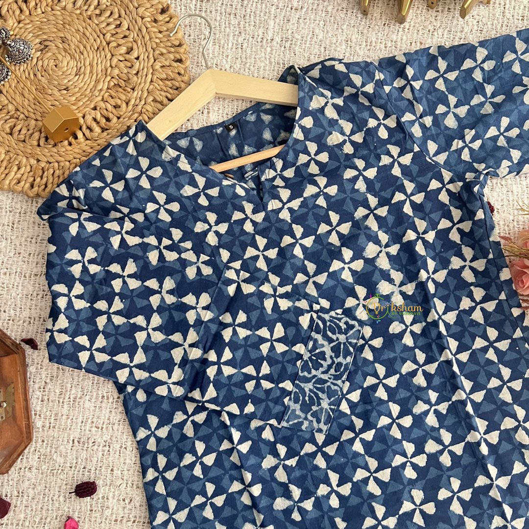Introducing Vriksham White with Blue Handblock Cotton Short Kurti, the perfect blend of style and comfort. Made with 100% cotton and handblock printing, this elegant 3/4 sleeve kurti is suitable for both daily wear and office wear. Elevate your wardrobe with this luxurious piece and make a statement wherever you go.