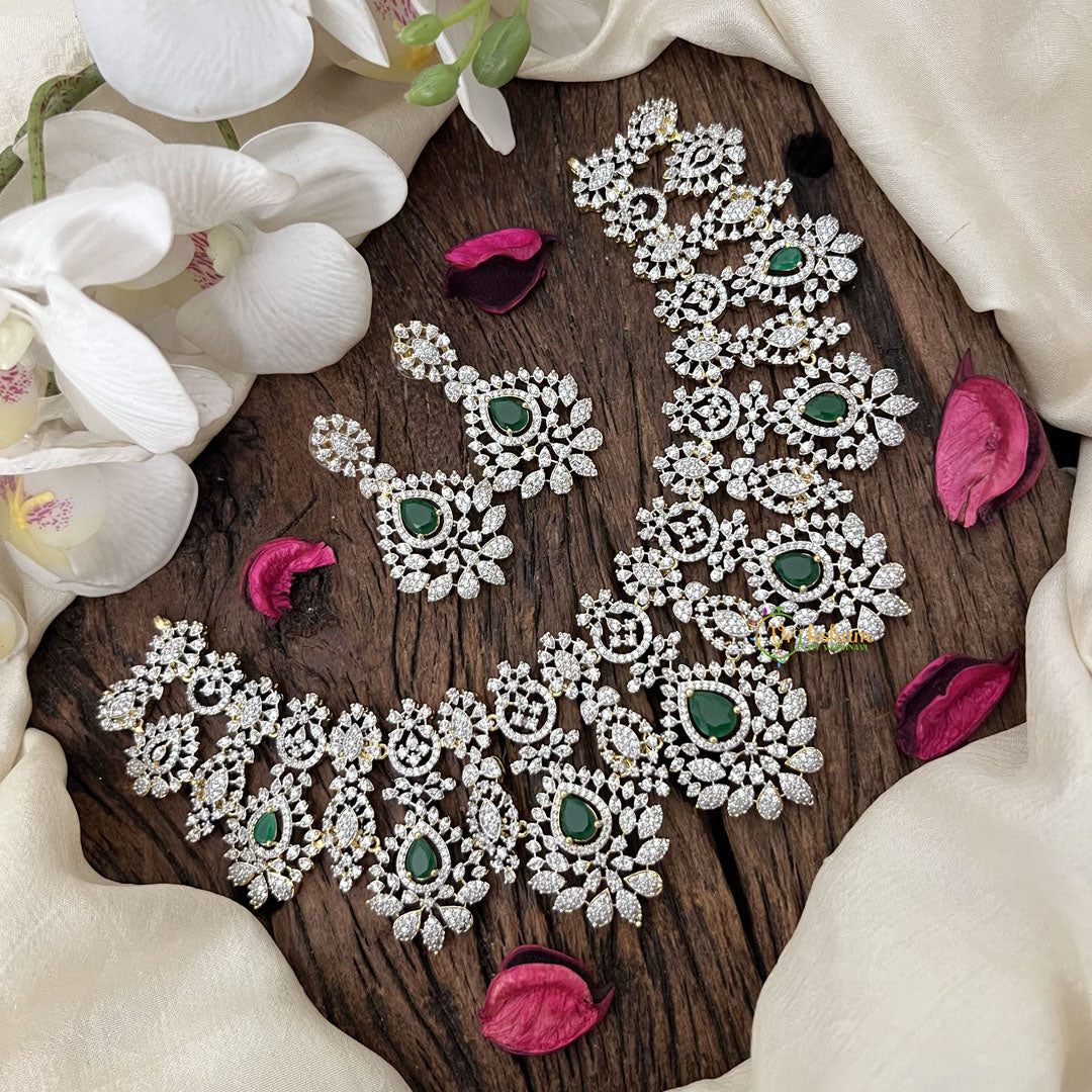 Vriksham Bridal American Diamond Short Neckpiece-Green-G18947