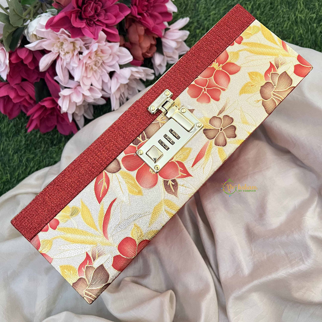 Elevate your bridal jewelry collection with this sophisticated bangle organizer, thoughtfully designed to showcase your most treasured pieces. Featuring three sturdy rods, this elegant storage solution keeps your designer bangles organized, accessible, and beautifully displayed. The secure lock mechanism ensures your precious bridal jewelry remains protected while maintaining an aesthetic appeal that complements any vanity or dressing room. Perfect for brides and jewelry enthusiasts who value both functionality and style.