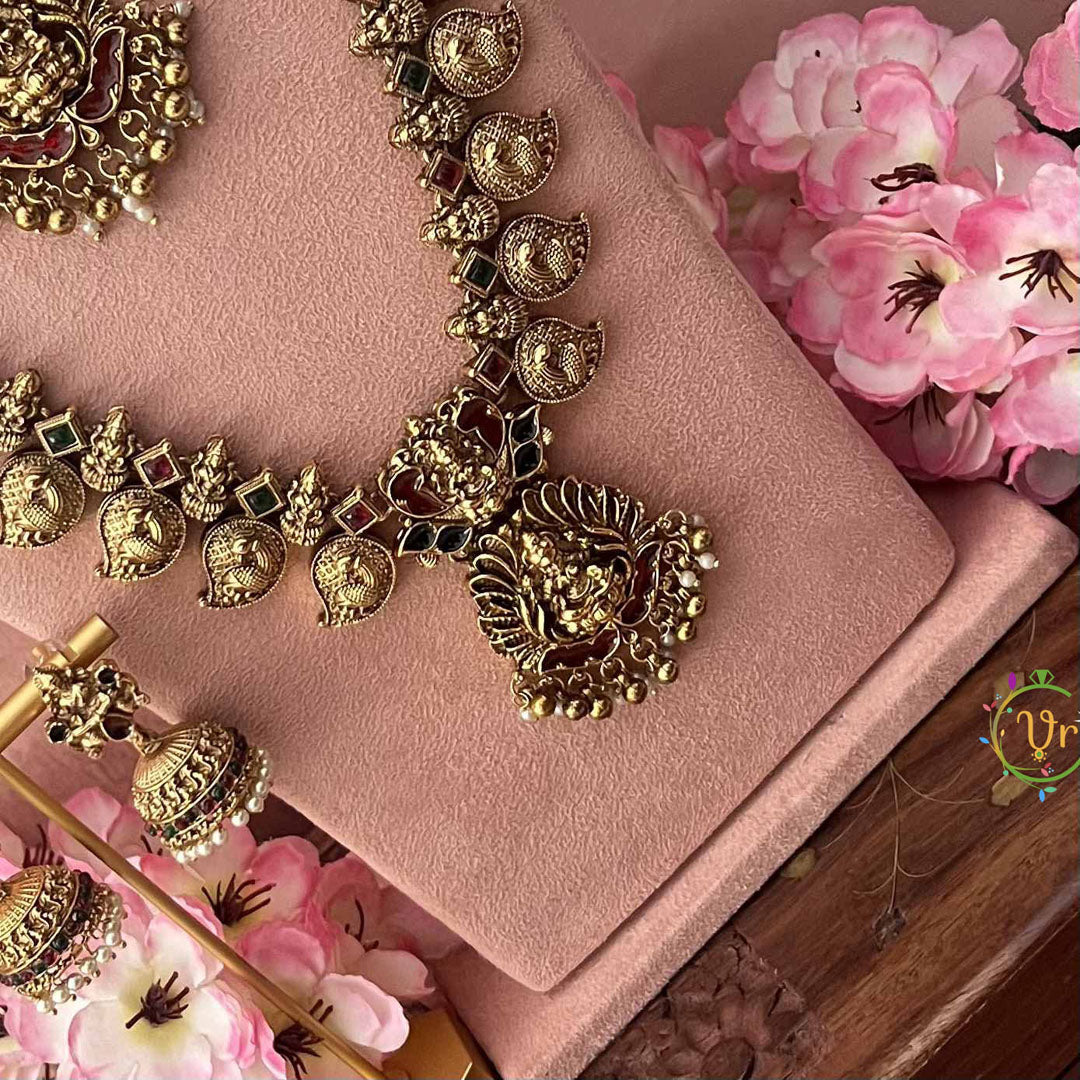 Embrace timeless elegance with this exquisite Manga Style Peacock Bridal Set, a masterpiece designed for the modern Indian bride. Adorned with intricate peacock motifs in rich red and emerald green hues, this set features lustrous gold beading that catches light beautifully. Each piece is meticulously crafted to celebrate traditional artistry while maintaining contemporary sophistication. Perfect for weddings, engagements, and festive celebrations, this bridal ensemble combines ornate detailing with refined grace, ensuring you radiate confidence and beauty on your special day.