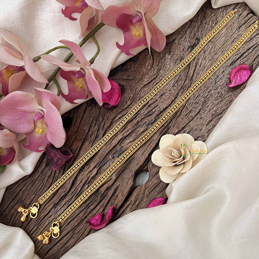 Enhance your style with Vriksham’s Brood Dot Line Gold Look Alike Anklets. Featuring a refined dotted line design, these anklets offer a sleek blend of simplicity and elegance. Their gold-inspired finish adds a subtle shimmer, making them an ideal accessory for both everyday wear and special occasions.