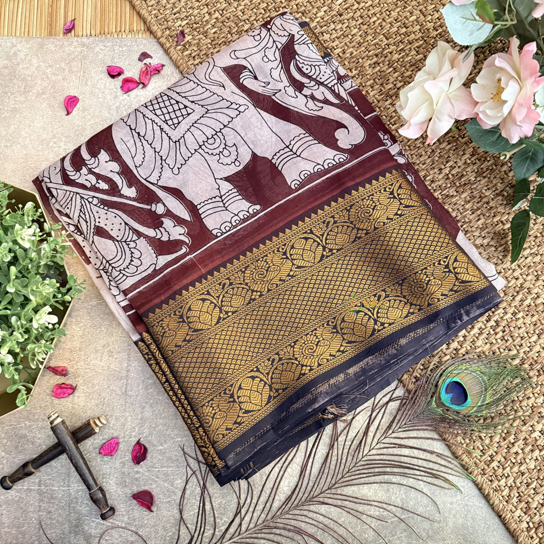 Vriksham Brown Kalamkari Saree With Kanchi Border-VS4397