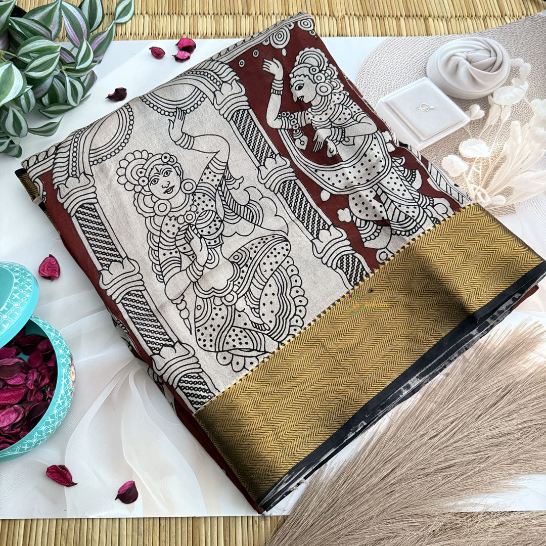 Vriksham Brown & Off White Kalamkari Saree With Nizam Border-VS4675