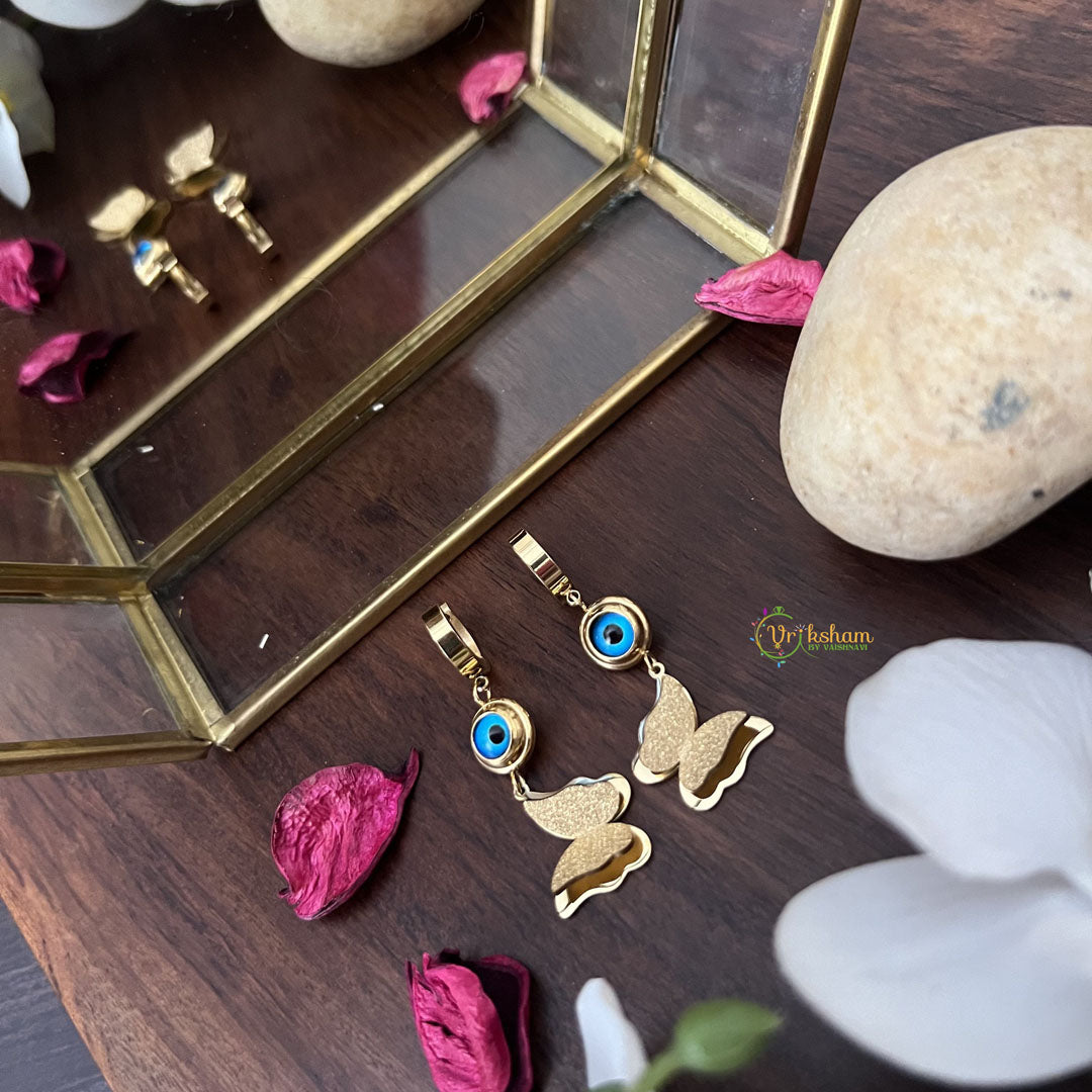 Indulge in elegance with Vriksham's Butterfly With Eye Anti Tarnish Stainless Steel Earring. These premium accessories not only add a touch of sophistication to any outfit, but also boast an anti-tarnish feature for long-lasting beauty. Make a statement with these exclusive and timeless earrings.