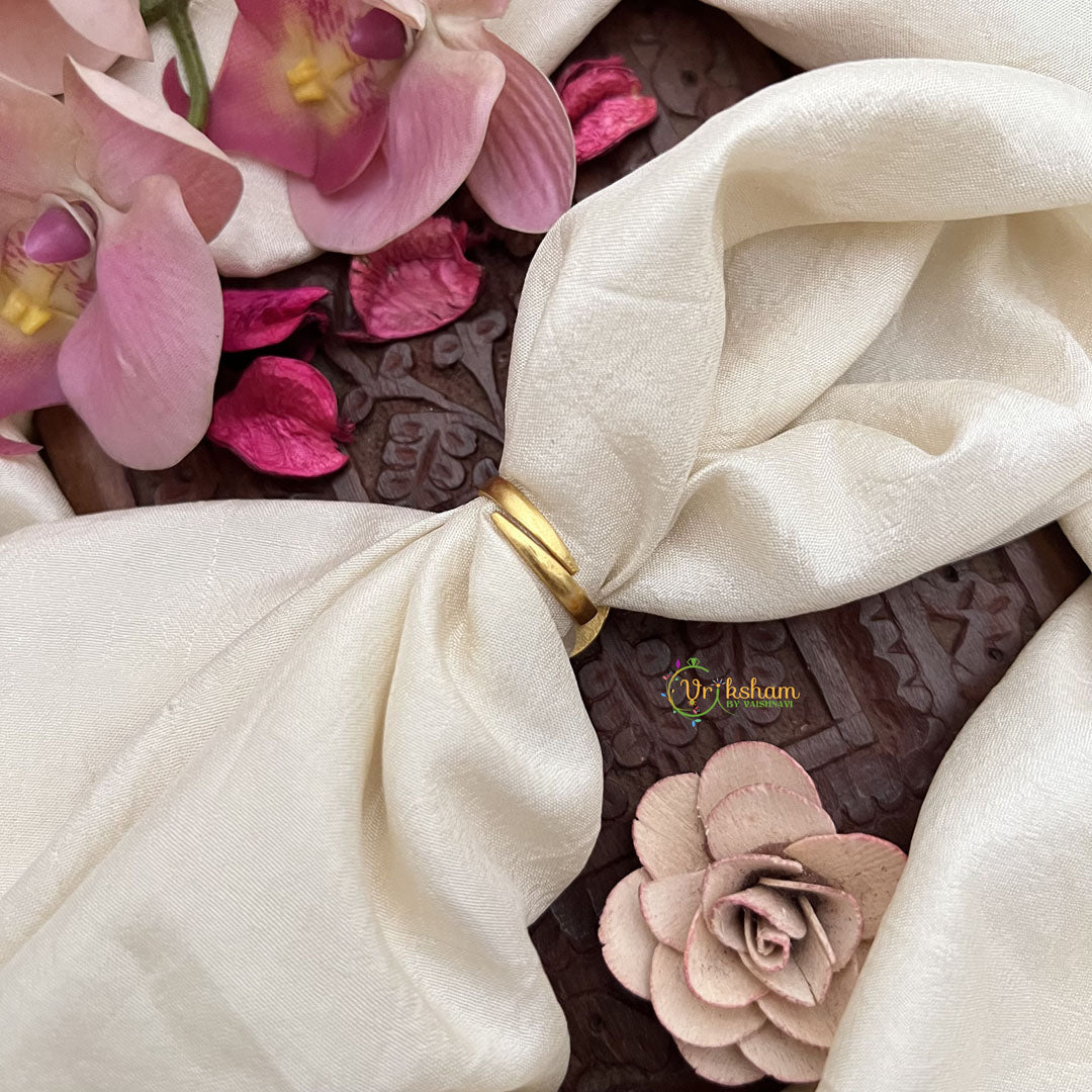The Vriksham Chandbali with Floral Jadau Kundan Finger Ring in red and green combines the classic crescent shape with intricate floral kundan work. This sophisticated ring offers a harmonious blend of traditional design and vibrant colors, making it a graceful accessory for elegant occasions.