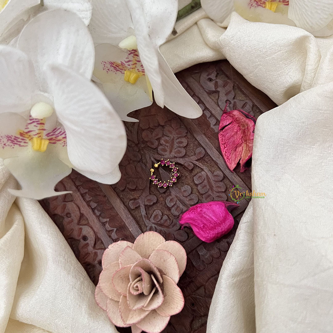 The Vriksham Charulata Floral Septum Ring in red beautifully blends delicate floral motifs with subtle color accents. Crafted to offer an elegant and refined aesthetic, this piece adds a sophisticated touch to your look, perfect for those who appreciate timeless artistry and graceful design.