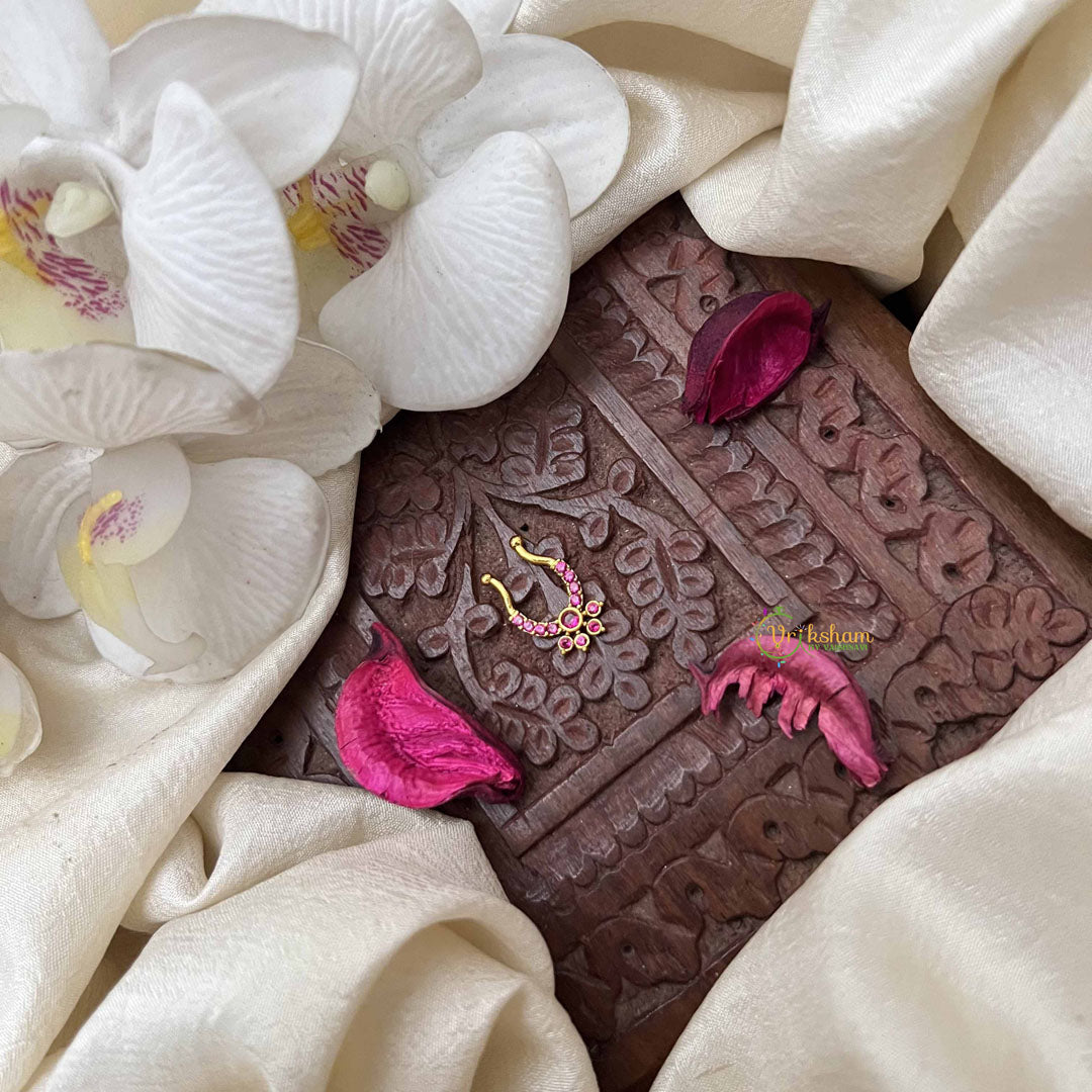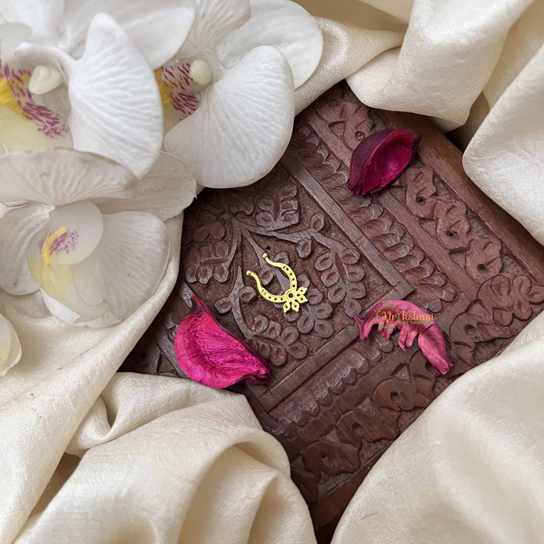 Golden Naths/Nose ring for Non - Pierced Nose. People who do not have piercing do not have to worry about not being able to wear naths. These nose rings helps people with non pierced nose also wear the same with a screw like holding. The moment you see the nath you will be able to understand how it will sit on the nose.