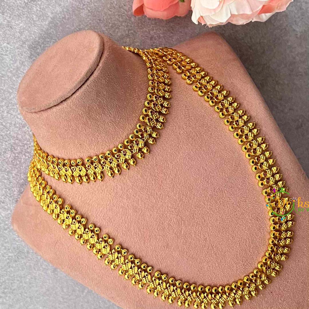 Embrace timeless beauty with this classic peacock bridal set, rendered in a lustrous gold-look finish that captures traditional elegance with contemporary appeal. The graceful peacock motif symbolizes beauty and grace, while rich red and green accents create a vibrant yet harmonious color palette. Each piece showcases refined detailing and superior craftsmanship, offering an accessible luxury for the discerning bride. The harmonious composition of color and design creates a complete ensemble that radiates both confidence and refined taste. Perfect for celebrating cultural heritage with understated sophistication, this distinguished collection merges timeless aesthetics with modern sensibility, delivering an unforgettable bridal presence for your most significant celebrations.