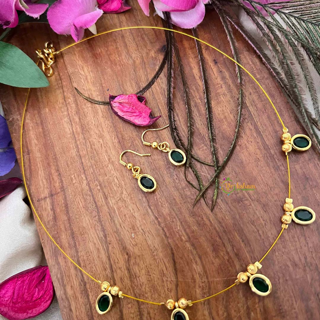 Vriksham Classic Green Oval shaped Felxible 5 Pendant Invisible Chain-KG22298