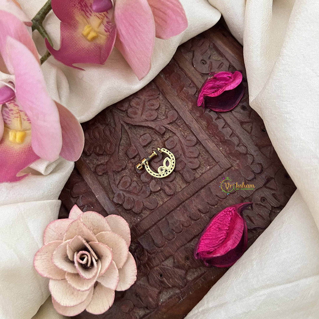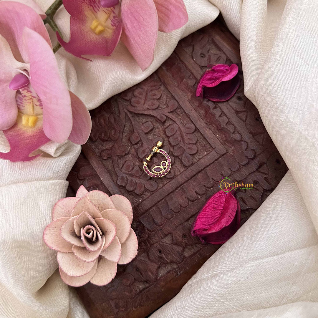 The Vriksham Classic Leaf & Dot Style Press Nose Pin in rich red features elegant leaf and dot motifs paired with a secure press-fit design for comfortable, easy wear. This timeless piece adds a refined splash of color, perfect for enhancing your style with subtle sophistication.