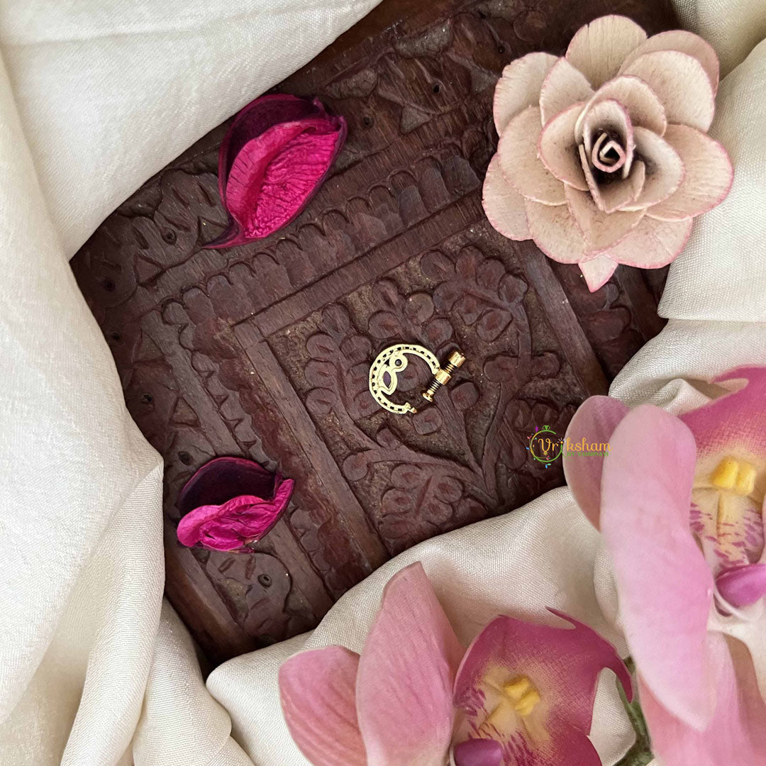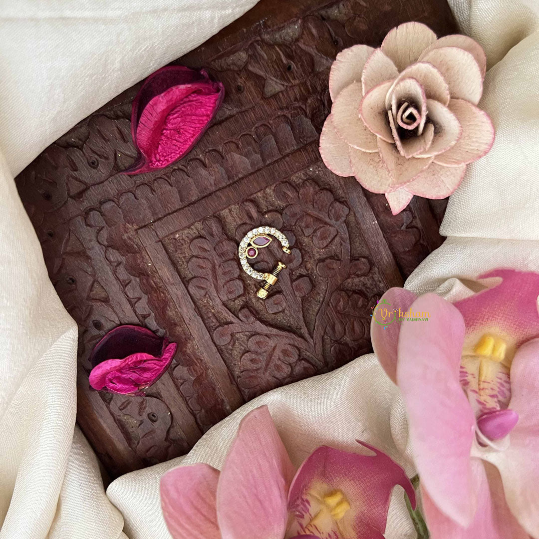 The Vriksham Classic Leaf & Dot Style Press Nose Pin in red and white features elegant leaf and dot patterns combined with a secure press-fit design for easy wear. This timeless piece adds a refined touch of tradition and style, perfect for enhancing your look with understated sophistication.