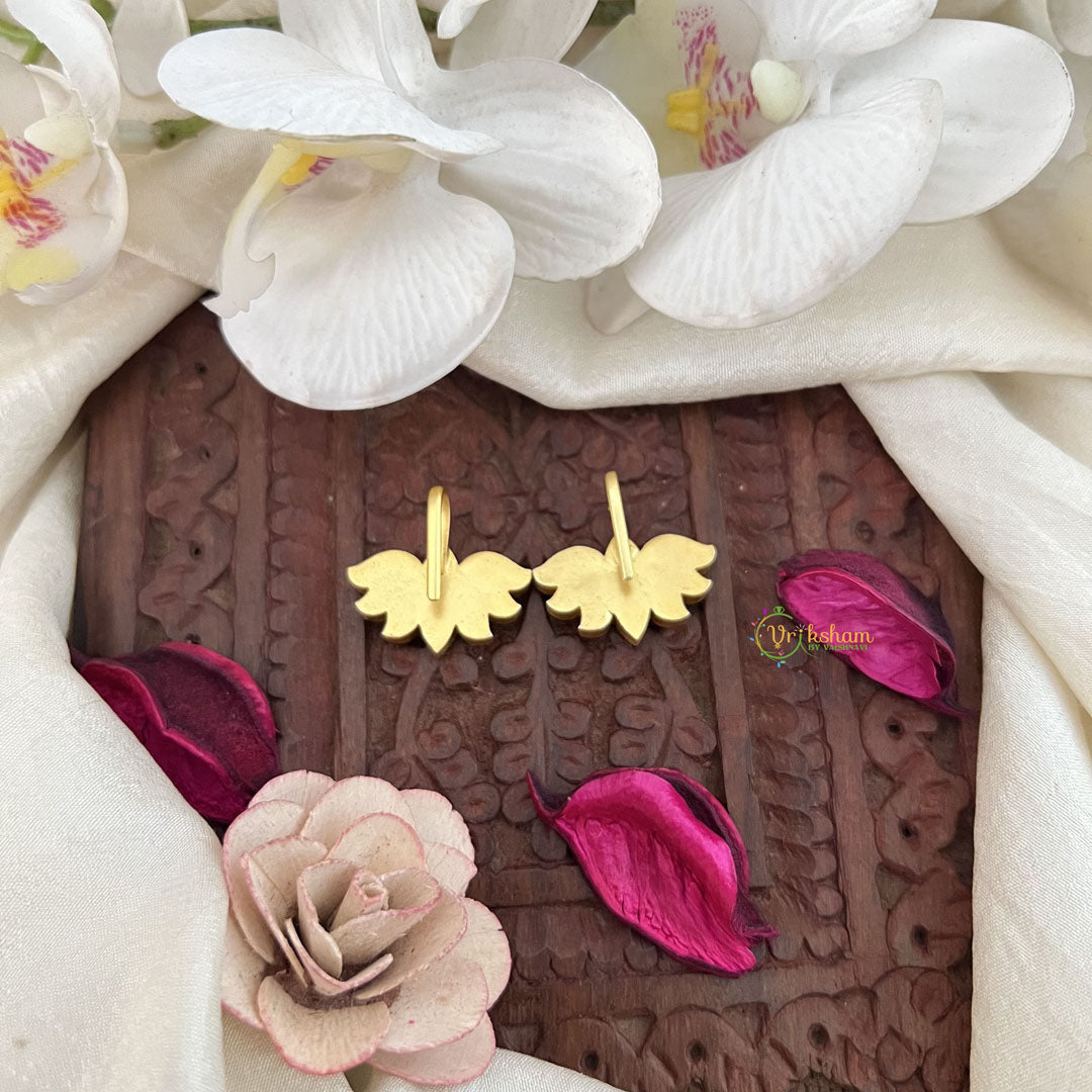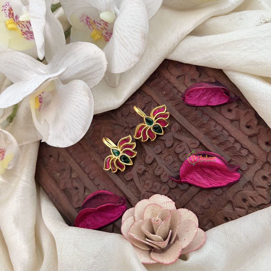 The Vriksham Classic Lotus Style Kundan Jadau Press Bugadi in green red features a timeless lotus design crafted with exquisite kundan and jadau detailing. This sophisticated accessory enhances traditional attire with its vibrant colors and elegant craftsmanship, making it an ideal choice for special occasions and celebrations.
