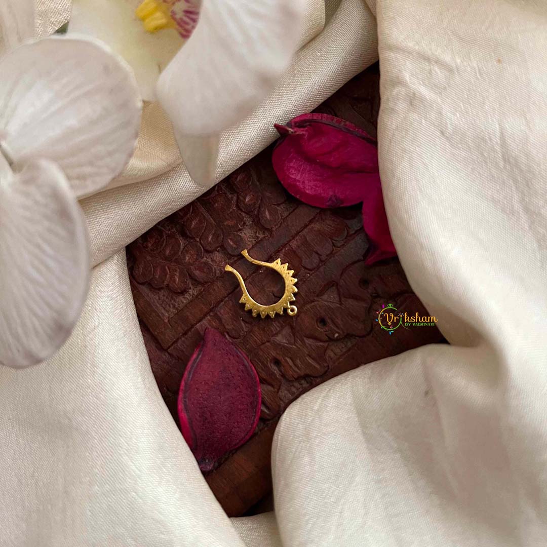 Celebrate timeless tradition with our Vriksham Classic Mookuthi Style Gold-Toned White Stone U-Shape Septum Ring. This authentic piece draws inspiration from the revered Mookuthi design, featuring an elegant U-shaped silhouette adorned with radiant white stones. Crafted in warm gold-toned metal, the ring honors classical Indian jewelry heritage while offering modern comfort and wearability. The refined stonework and traditional styling reflect generations of skilled artisanal craftsmanship. Ideal for those honoring cultural traditions or seeking meaningful facial jewelry, this septum ring brings spiritual significance, timeless beauty, and sophisticated elegance to your personal adornment, making it perfect for celebrations, daily wear, or special occasions.