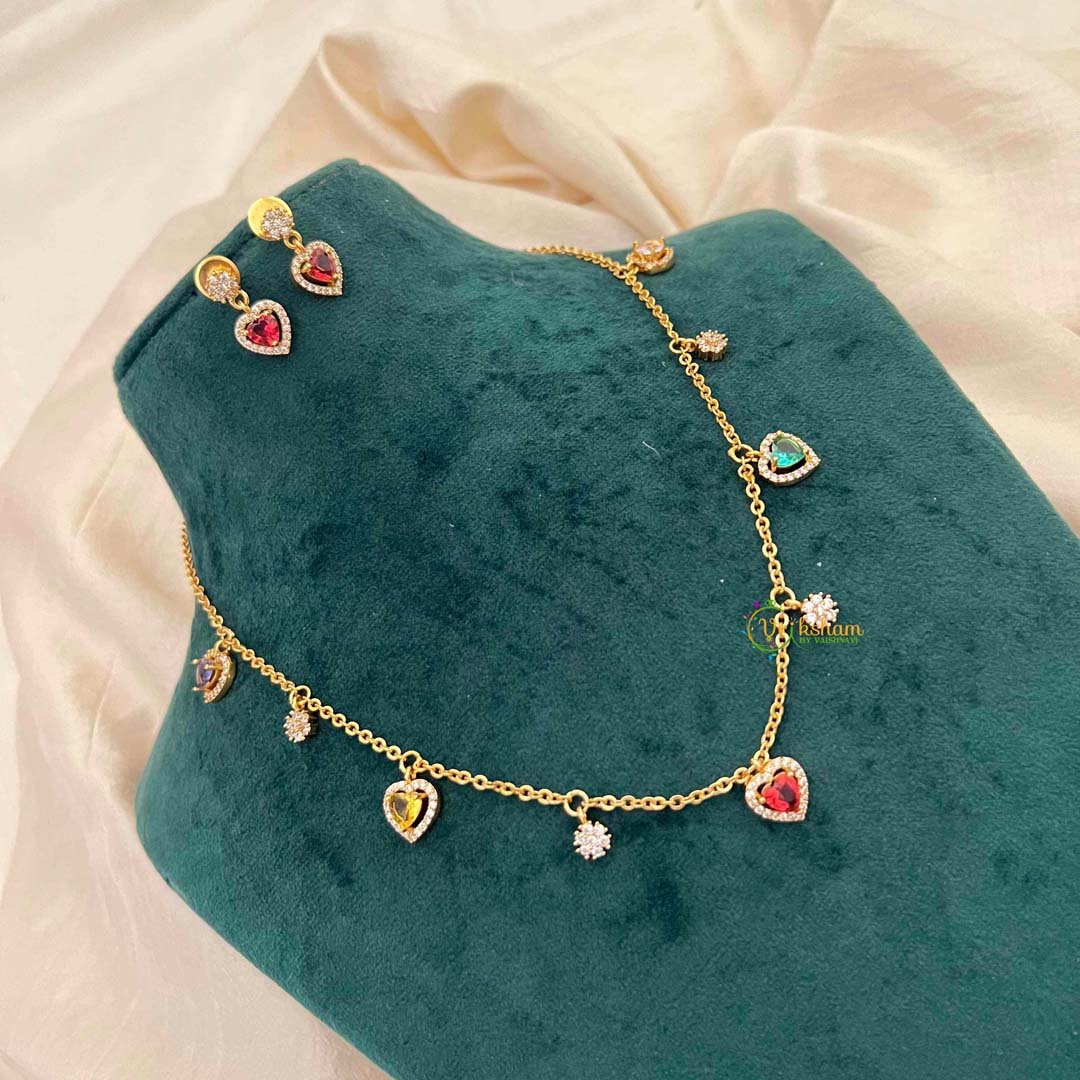 Embrace vibrant versatility with this multicolor heart necklace set. The dynamic pendant showcases an array of carefully curated hues, offering endless styling possibilities with your existing wardrobe. Paired with matching stud earrings, this collection allows you to express individuality while maintaining refined taste. The elegant chain presentation highlights the heart's captivating color palette, making it a conversation piece for any occasion. Perfect for those who appreciate bold artistry combined with timeless sophistication, this set brings personality and polish to your jewelry collection.