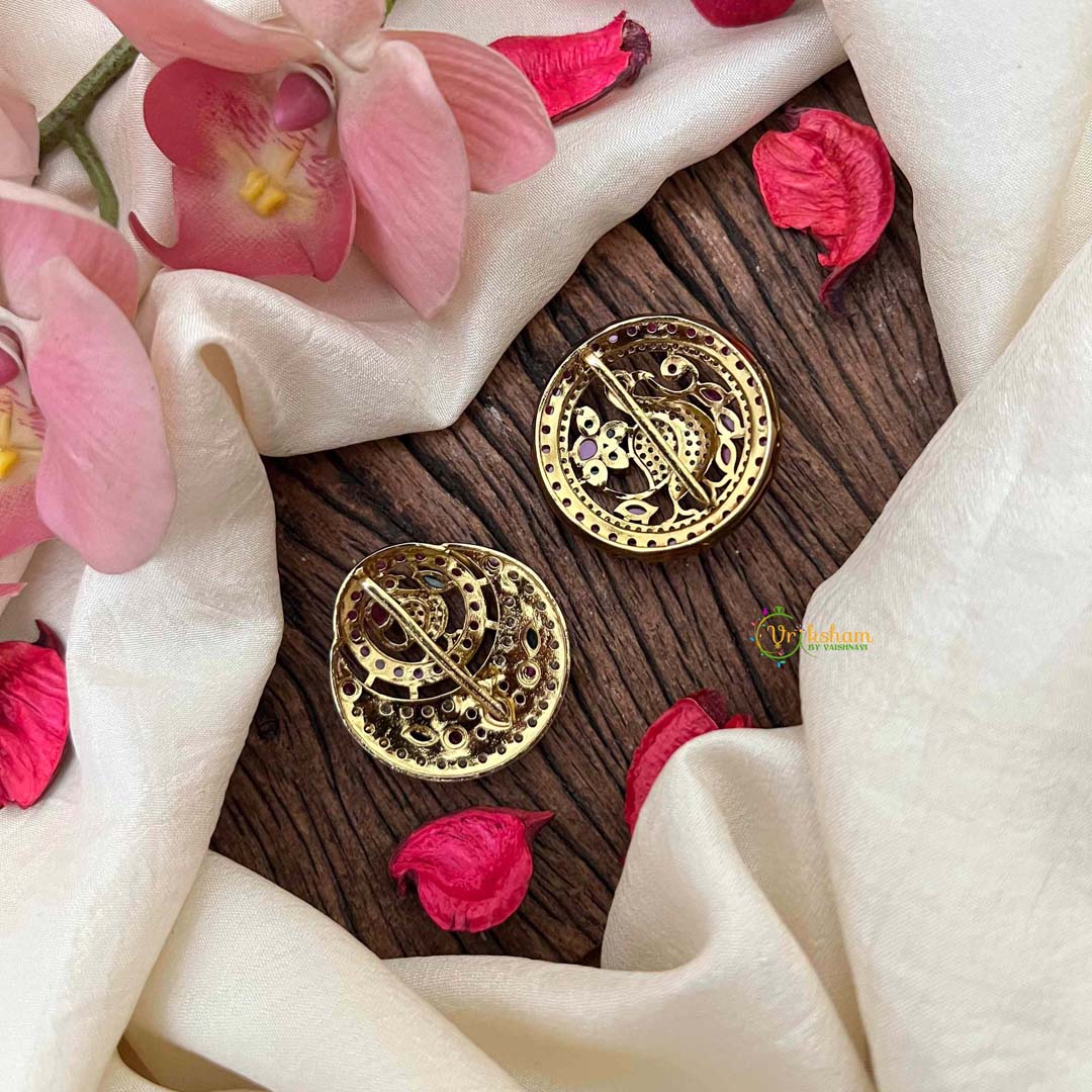 Embrace timeless majesty with this stunning Classic Peacock and Floral Motif Stone Chandran and Suryan Billai. The regal peacock, a symbol of grace and beauty in Indian heritage, takes center stage alongside delicate floral elements, creating a composition of extraordinary visual richness. Each stone is thoughtfully positioned to enhance the natural contours of the design, casting prismatic light that celebrates the wearer's elegance. This piece honors classical aesthetics while maintaining contemporary sophistication, making it equally suited for traditional ceremonies and modern occasions. A distinguished accessory that captures the essence of refined taste, this treasure speaks to those who appreciate jewelry steeped in cultural significance and artistic mastery.
