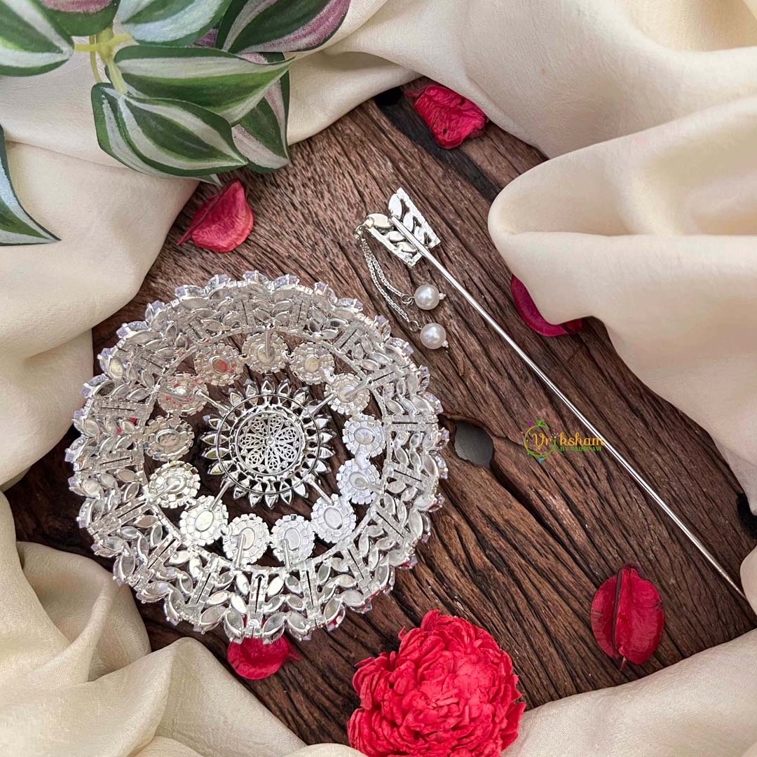 Elevate your hairstyle with this timeless round floral bun ornament, a sophisticated accessory that seamlessly blends botanical elegance with luxurious sparkle. Intricately designed with delicate floral patterns and adorned with radiant cubic zirconia stones, this piece transforms your updo into a refined statement. The circular form provides a graceful silhouette that complements various hair textures and styles, while the carefully positioned stones create a mesmerizing shimmer. Ideal for weddings, celebrations, and special occasions, it brings an air of cultivated beauty to your ensemble. Built for secure, comfortable all-day wear, this ornament honors the artistry of traditional craftsmanship. A distinguished accessory for those who appreciate the harmonious fusion of nature-inspired design and timeless luxury.