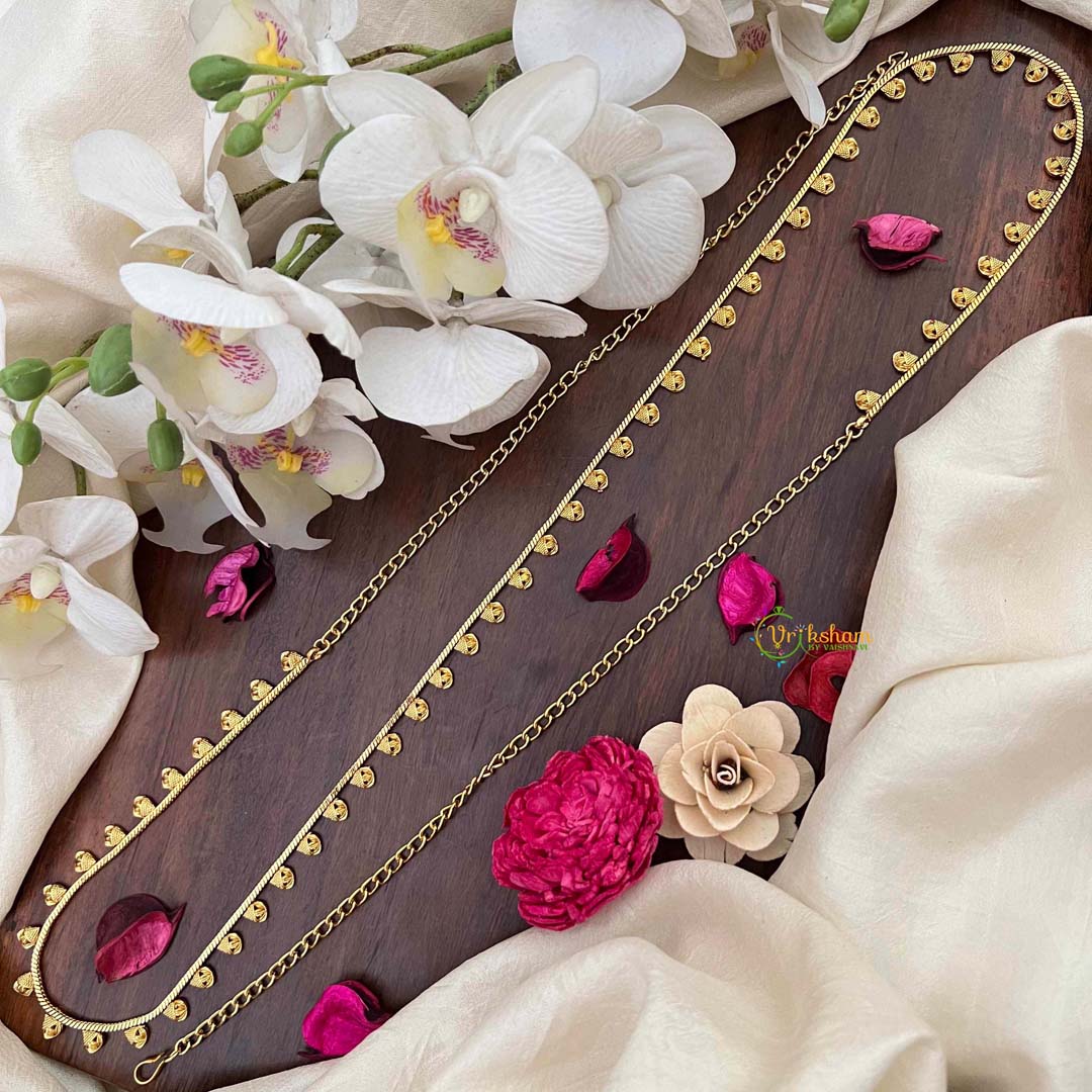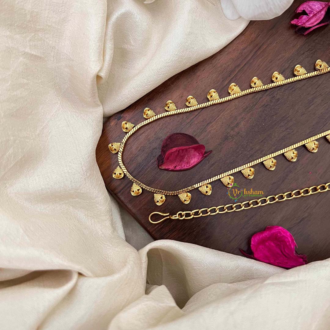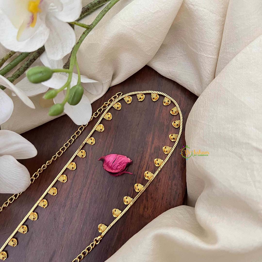Celebrate cultural heritage with this classic temple-inspired hip chain, embodying traditional artistry in lustrous gold finish. The design draws from architectural elements found in sacred spaces, translating them into wearable art that honors timeless aesthetics. Each detail reflects meticulous craftsmanship, creating a piece that resonates with spiritual significance and refined elegance. Perfect for religious ceremonies, weddings, and festive gatherings, this accessory adds authentic charm to your traditional wardrobe. The warm gold tone enhances the intricate patterns, making it a meaningful investment for those who cherish cultural authenticity and sophisticated ornamentation.