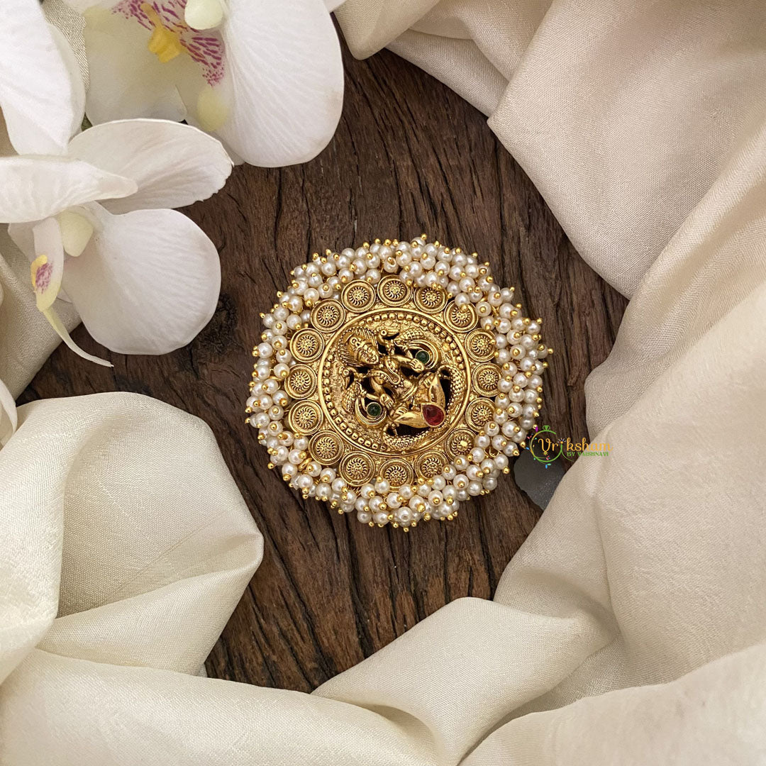 Indulge in luxury with our Vriksham Cluster Pearl Lakshmi Bun Billai-Jada Billai-Red Green. Adorned with exquisite pearls and adorned with a Lakshmi design, this bun billai combines elegance and tradition. Perfect for special occasions or adding a touch of sophistication to your everyday look.