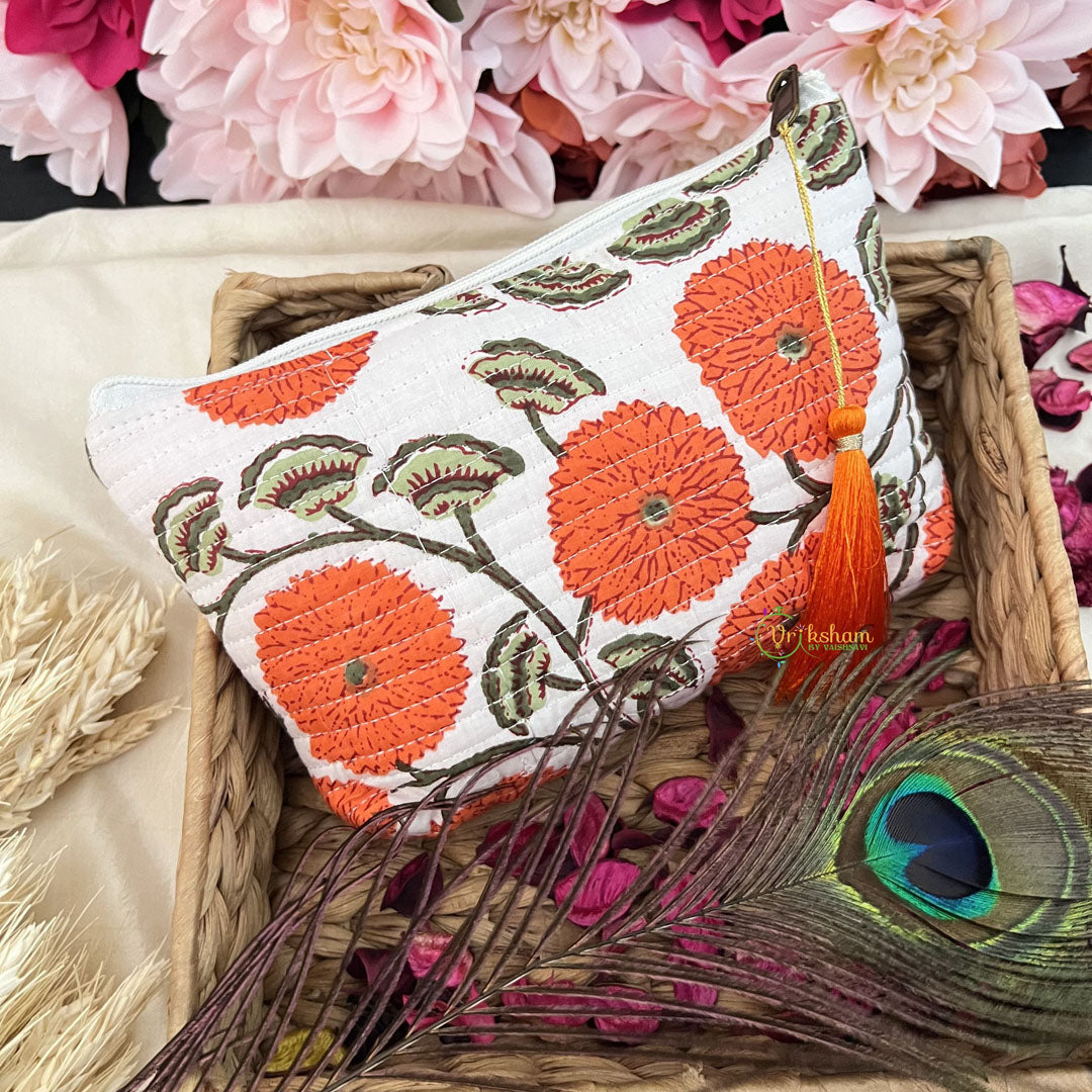 The Vriksham Cotton Pouch in white features a delicate floral print that embodies timeless elegance. Made from soft cotton and finished with a secure zipper, this purse offers a perfect blend of sophistication and practicality. Its sleek design and compact size make it an ideal accessory for women who appreciate refined style and everyday convenience.