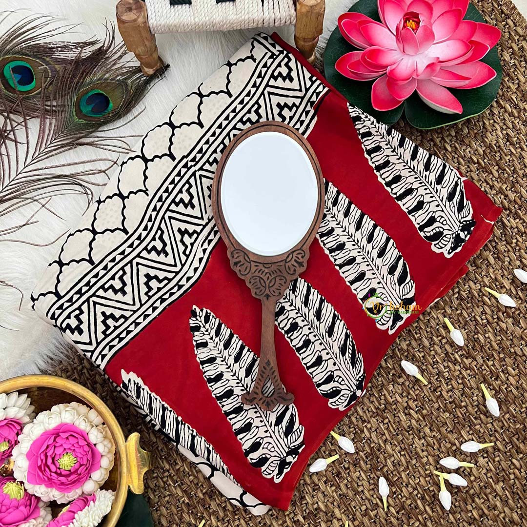 The Vriksham Cream Designer Ajrakh Modal Silk Saree embodies understated elegance with its soft cream hue and intricate Ajrakh patterns. Crafted from smooth modal silk, it offers a graceful drape and comfortable wear, making it an ideal choice for refined occasions that celebrate timeless sophistication.
