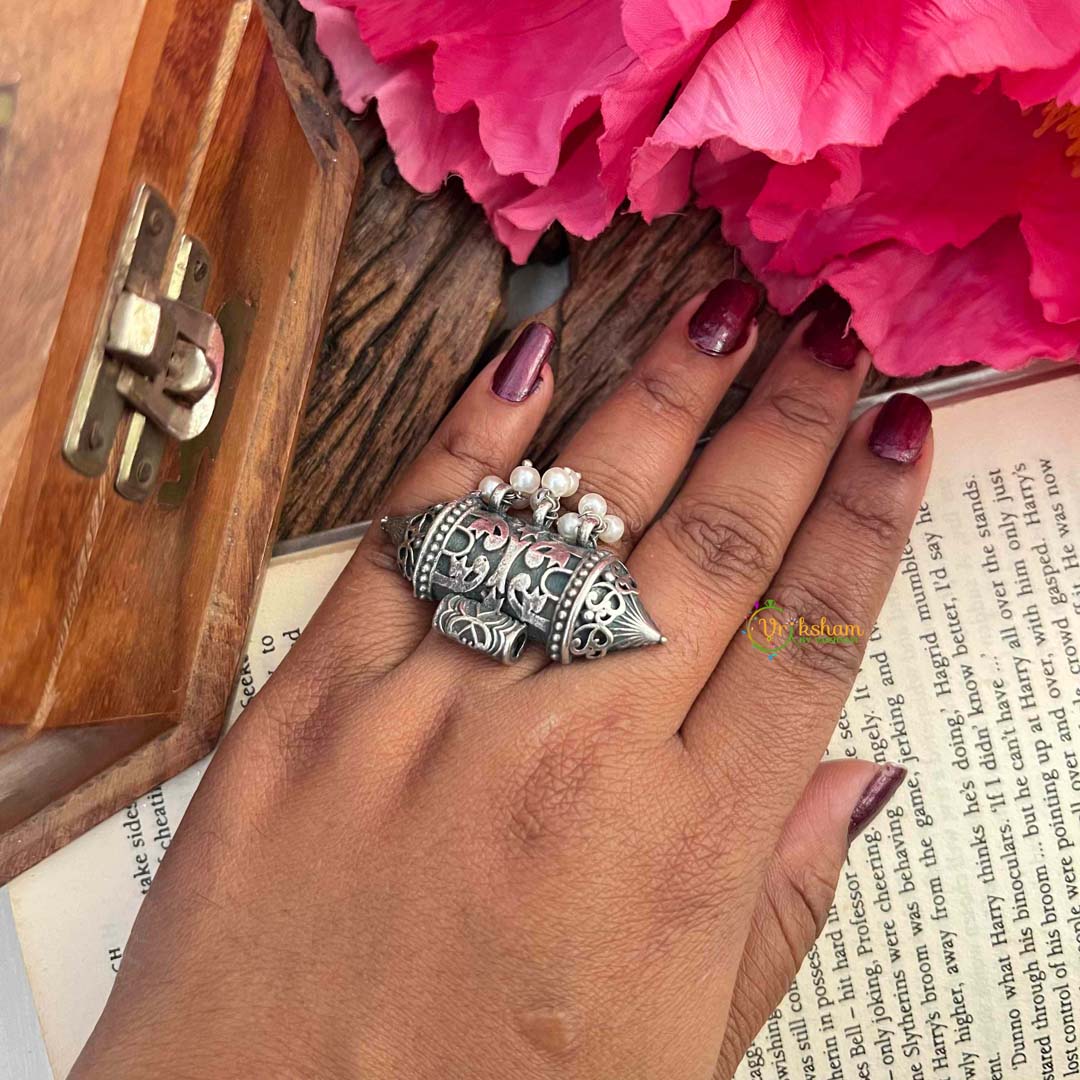 Cylindrical Taveez Style Statement Figure Ring Embrace spiritual protection with this distinctive cylindrical taveez-style statement ring, blending traditional amulet design with contemporary jewelry aesthetics. The tubular form echoes the classic taveez pendant, symbolizing safeguarding and divine blessings while worn as a bold ring statement. The cylindrical silhouette creates an architectural presence on the finger, making it an eye-catching focal point that celebrates cultural heritage. Perfect for those seeking meaningful jewelry that honors spiritual traditions while making a modern fashion statement. The unique shape ensures comfort and visibility, ideal for daily wear or special occasions. This piece merges ancient protective symbolism with artistic expression, appealing to those who value both spiritual significance and distinctive style. A conversation-starting accessory that transforms traditional concepts into wearable contemporary art.