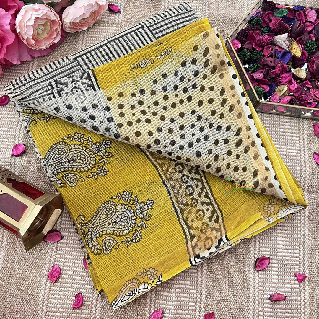 Celebrate cheerful elegance with this delightful Kota cotton saree, featuring charming daisy strips in vibrant yellow and crisp white that evoke springtime freshness and refined beauty. The luminous yellow creates visual warmth, while the delicate daisy motifs add artistic charm and contemporary appeal to the composition. Crafted from premium Kota cotton, this saree offers exceptional breathability and a fluid drape that moves gracefully with every gesture. The lightweight fabric ensures all-day comfort, making it perfect for celebrations, garden events, and refined gatherings. The cheerful color combination provides remarkable versatility, pairing beautifully with various blouse styles and accessories. The meticulous daisy detailing showcases exceptional craftsmanship and attention to artistic detail. Ideal for those who appreciate vibrant design choices combined with quality construction, this saree seamlessly blends traditional artistry with contemporary sensibilities. Perfect for both festive occasions and everyday elegance, this piece celebrates timeless style and comfort. An investment in enduring quality that brings together heritage craftsmanship, superior comfort, and the enduring appeal of thoughtfully designed ethnic wear.